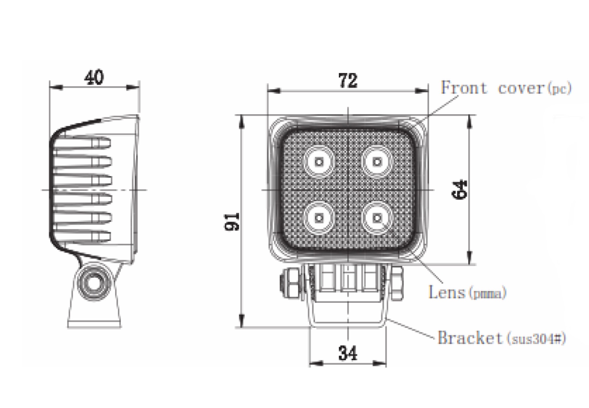 Specifikation Effektförbrukning 10W Övrigt E-godkänd som backljus enligt reglemente ECE-R23. E-godkänd EMC ECE-R10 Kabellängd 2m Dimensioner 72x64x40mm (Höjd inkl. fäste 91mm) Verkliga Lumen 600-650lm Antal LED dioder 4x3W OSRAM Antal lumen 1000lm Kapslingsklass (IP) 67 Spänning (V) 9 – 36V - Dokument