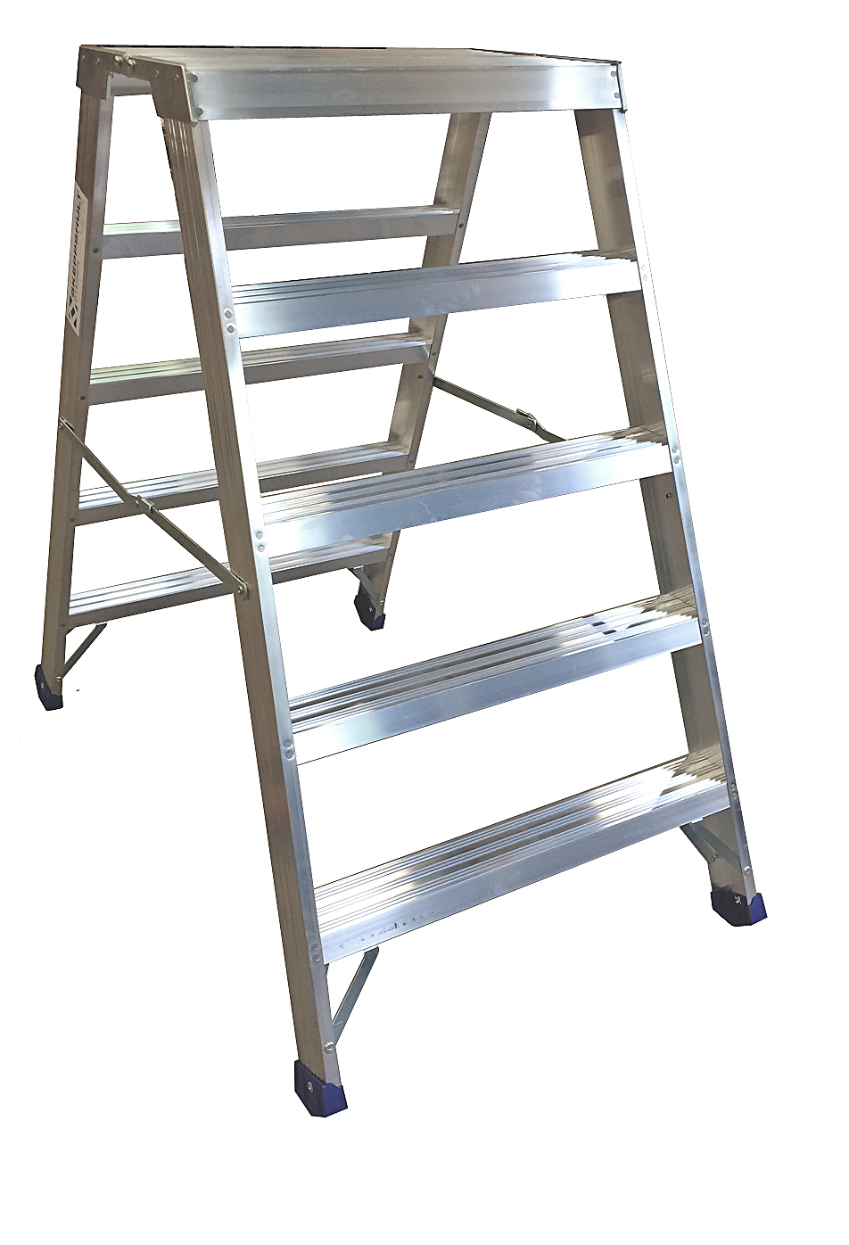 Specifikation Höjd (mm) 1175 Djup (mm) 1235 Egenvikt (kg) 12.5 Material Aluminium Förpackningsmått LxBxH (mm) 1315x740x330mm Lev. art 4750-05 Antal steg 5 Plattformshöjd (mm) 1205 Plattformsmått LxB (mm) 605x350 - Dokument