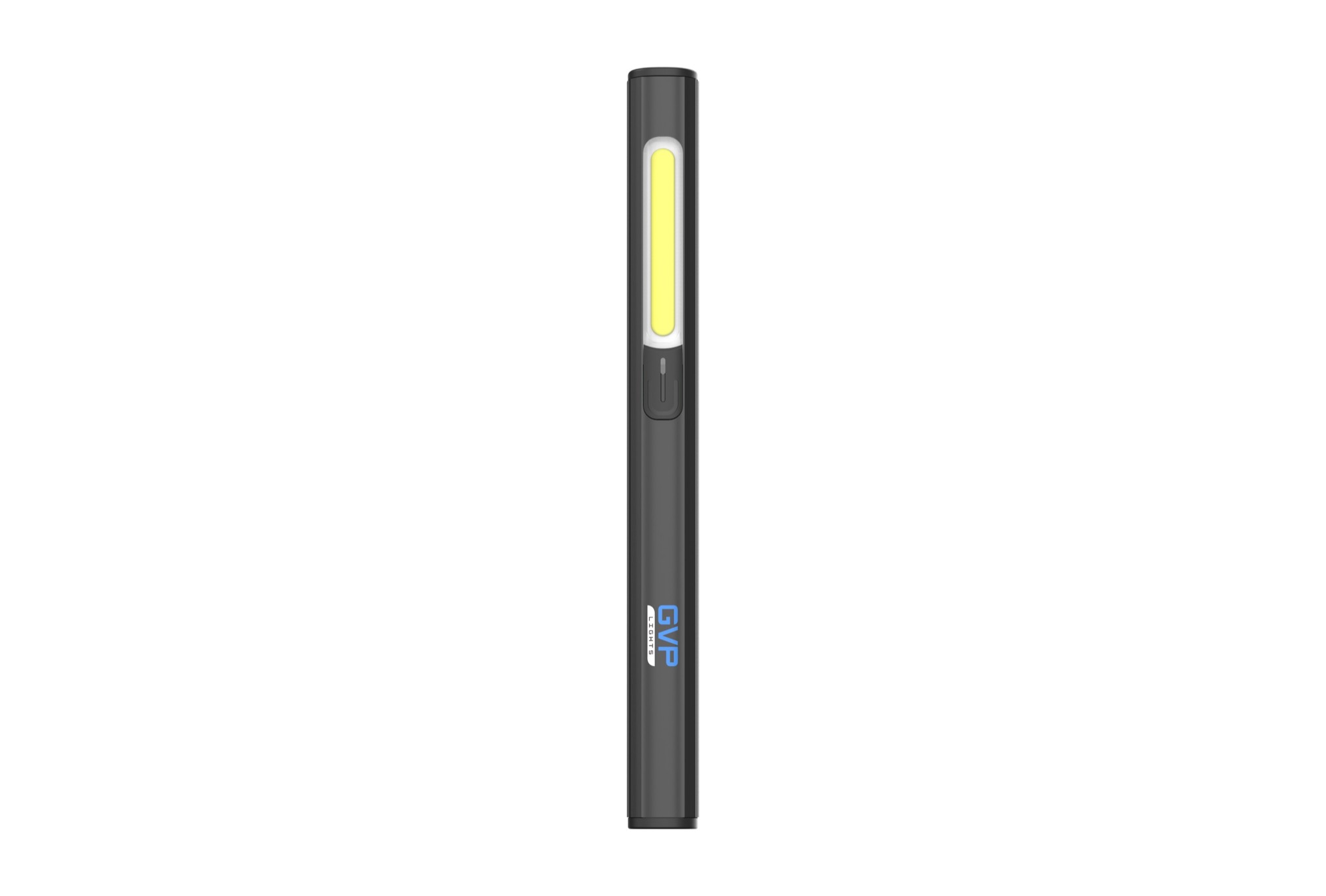 Inspektionslampa i pennformat. Magnet och fickclips på baksidan. Huvudlampan ger ett brett ljus medan spotlampan i toppen ger ett smalare. Laddning genom medföljande USB-C kabel. • Fickclips och magnet på baksida • Batteriindikator • Smidigt format. Ljuskälla COB LED Batterityp 3,7 V 600 mAh Li-ion Ljusstyrka, huvudlampa 150 lm Ljusstyrka, spotlampa 70 lm Färgtemperatur 5500–6500K Färgåtergivningsindex CRI 70