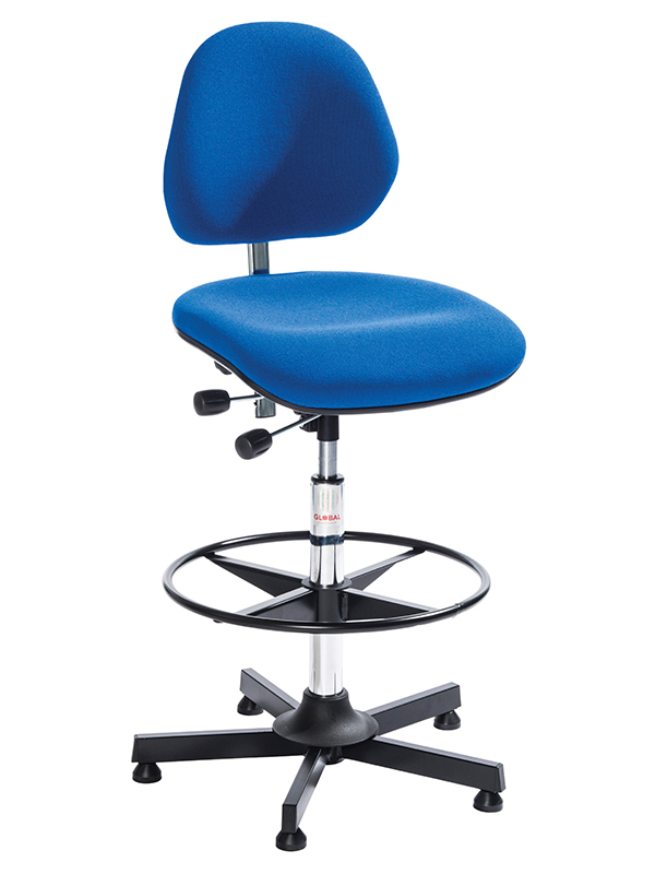 Arbetsstol Aktiv, Hög, blått tyg, stålkryss med glidfötter är en tålig och smidig arbetsstol som passar perfekt i lager, verkstad eller industri. Med sina robusta material och följsamma hjul är den ett givet val för dig som jobbar rörligt.