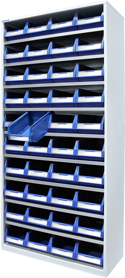 Backskåp som passar perfekt för butiken, lagret eller verkstaden. Skåpet levereras komplett med 40 modulbackar. Backskåpet erbjuder stor kapacitet och flexibel förvaring som passar utmärkt för smådelssortiment. Backarna kan kompletteras med etiketter för ökad ordning.