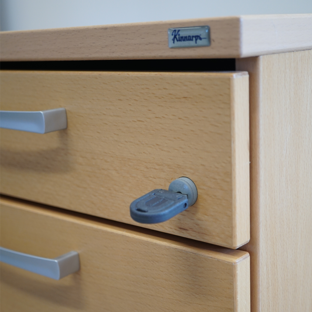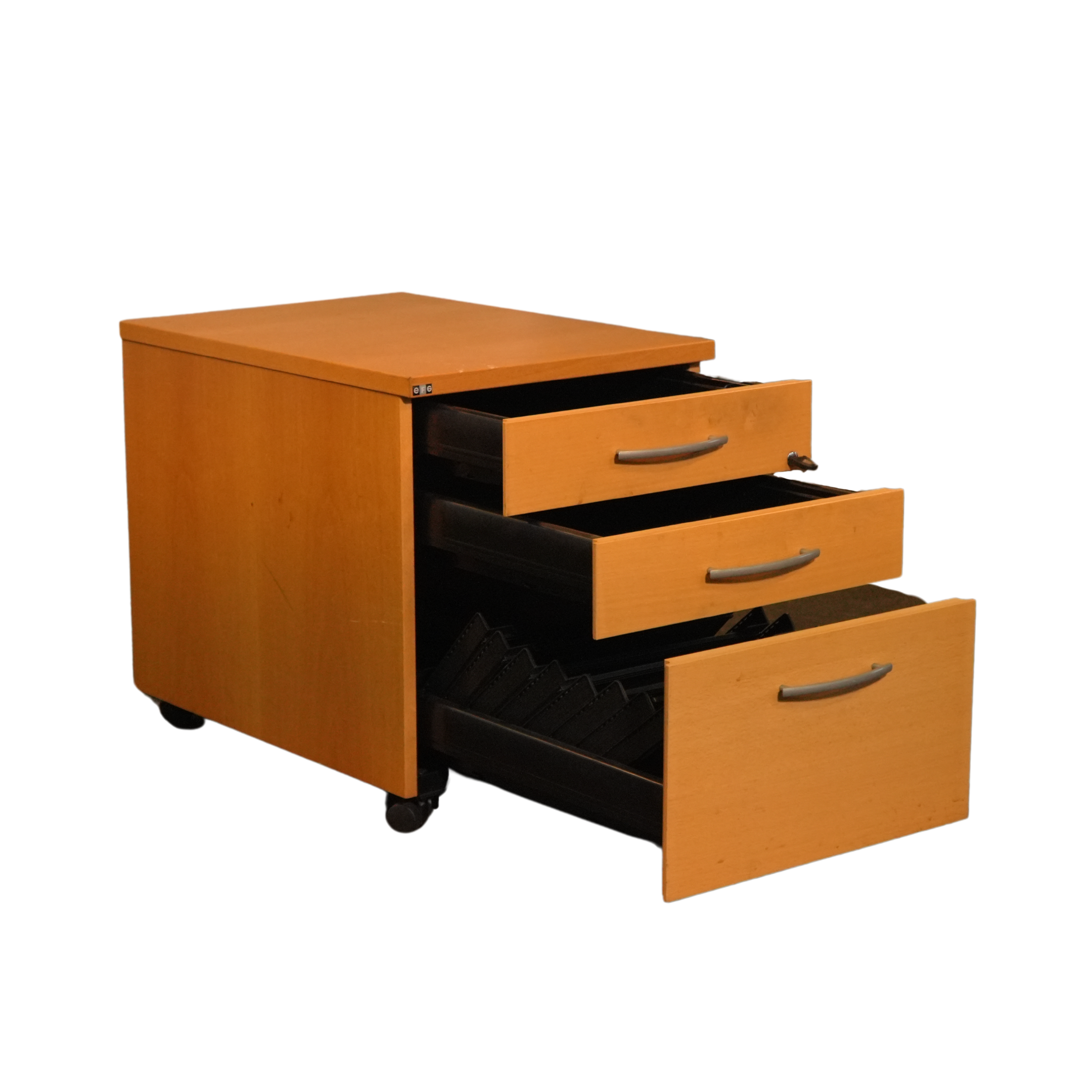 Hurts från Kinnarps med tre lådor för bra förvaringsmöjligheter. Första lådan är försedd med lås och tredje lådan med arkivfack. Utrustad med 4 hjul för enkel förflyttning. Hurtsarna är i gott begagnat skick.