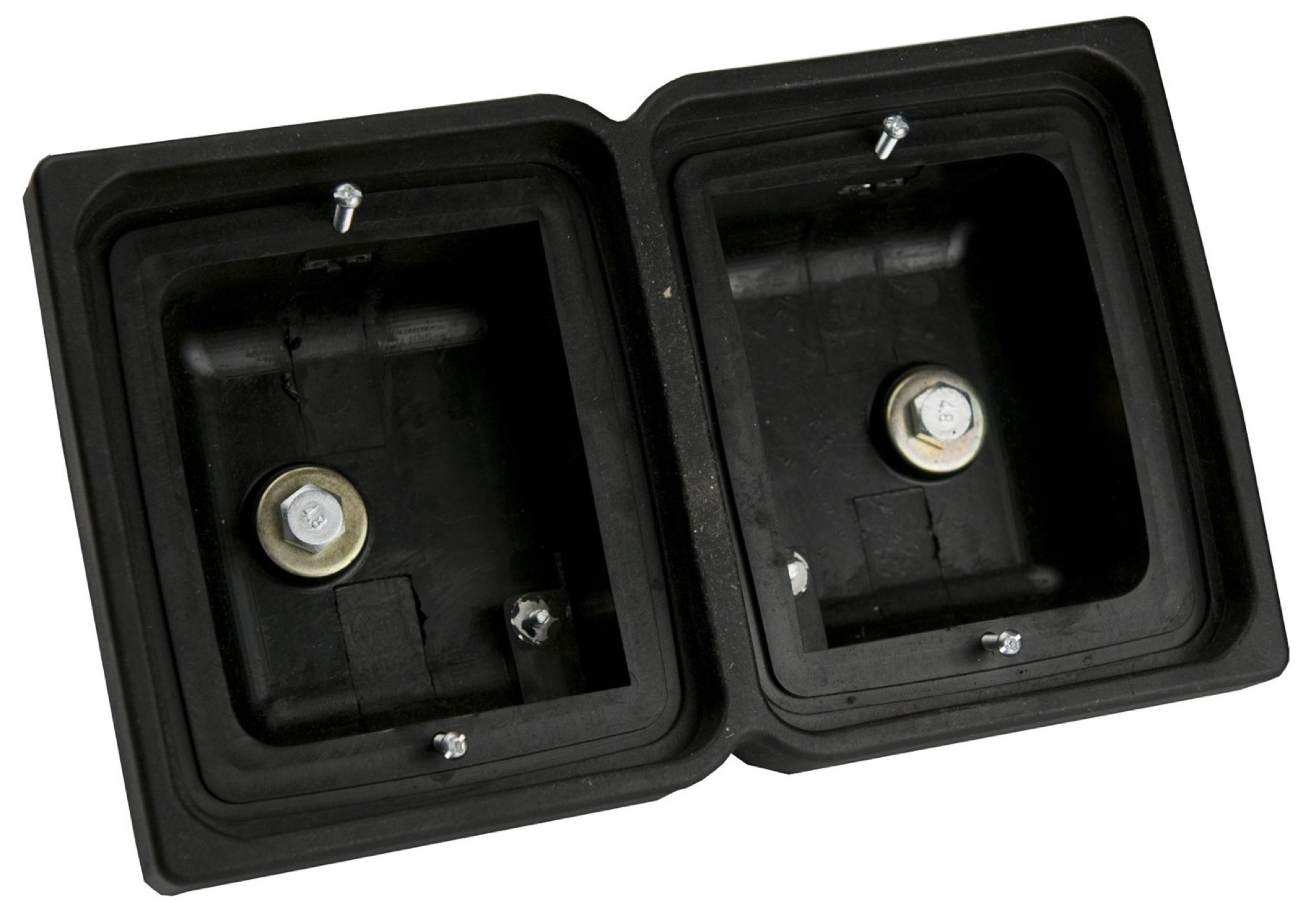 Skyddshus i kraftigt gummi för dubbelmontering. Minskar vibration och skyddar lamporna effektivt. Idealisk för tung utrustning och fordon.