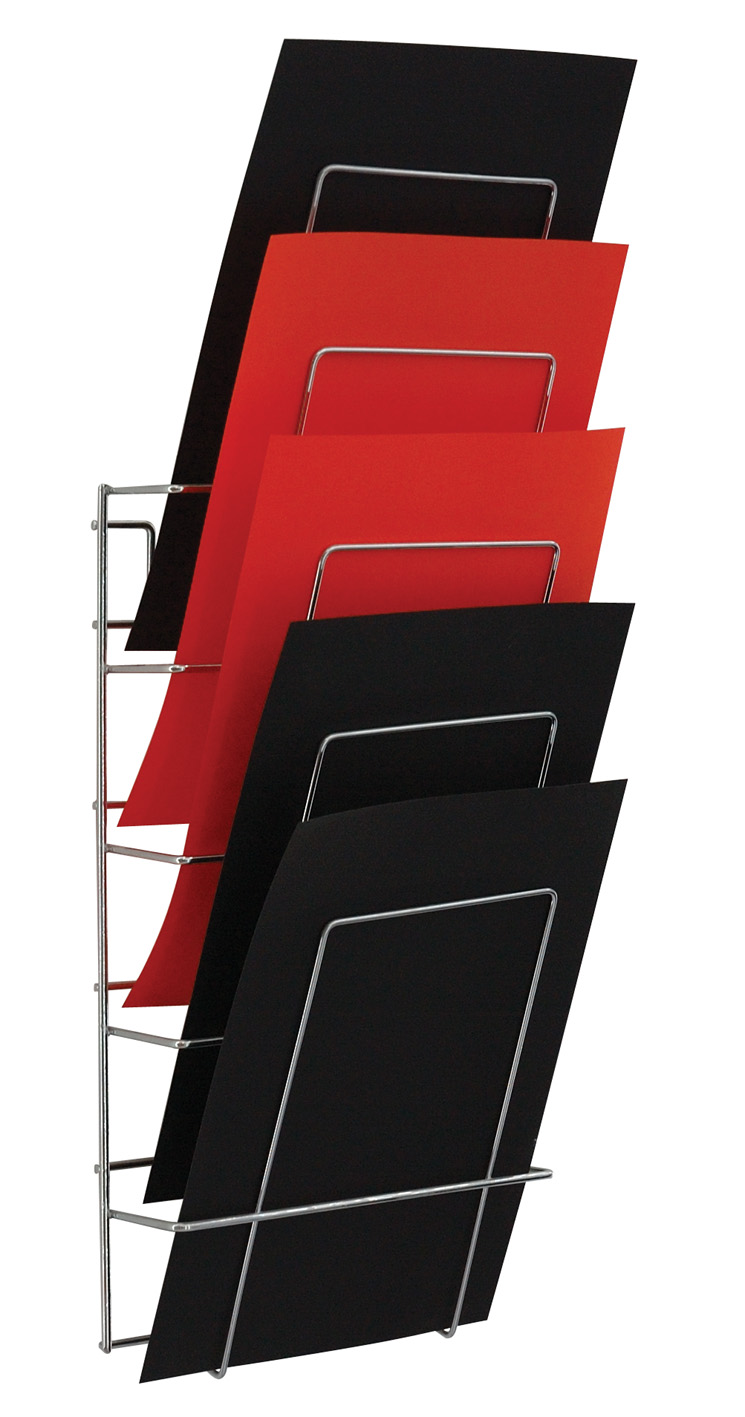 Stadigt broschyrställ för blanketter och broschyrer. Stället är tillverkat i ståltråd och monteras enkelt på vägg. Välj mellan ett ställ som har 5 eller 10 fack, alla anpassade för blanketter, broschyrer eller tidningar i A4-format.