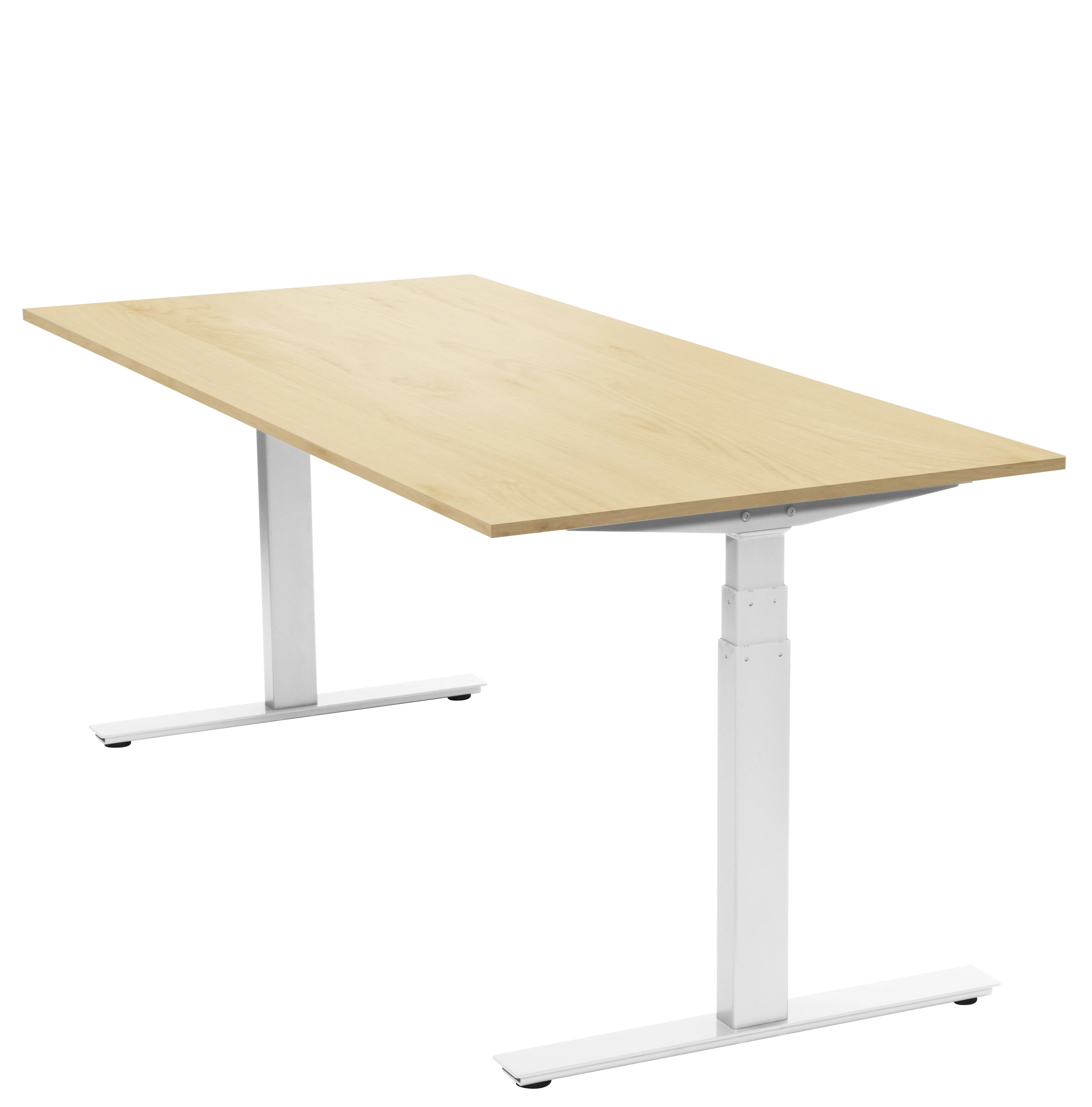 Eldrivet höj- och sänkbart skrivbord som underlättar för variation under arbetsdagen. Skrivbordet har en bordsskiva i björk och stativ i vitt. - Eldrivet - Stabilt och tystgående - Integrerad styrbox (plug and play) - 100 kg belastning - 670 - 1170 mm arbetshöjd - Enkel och snabb montering