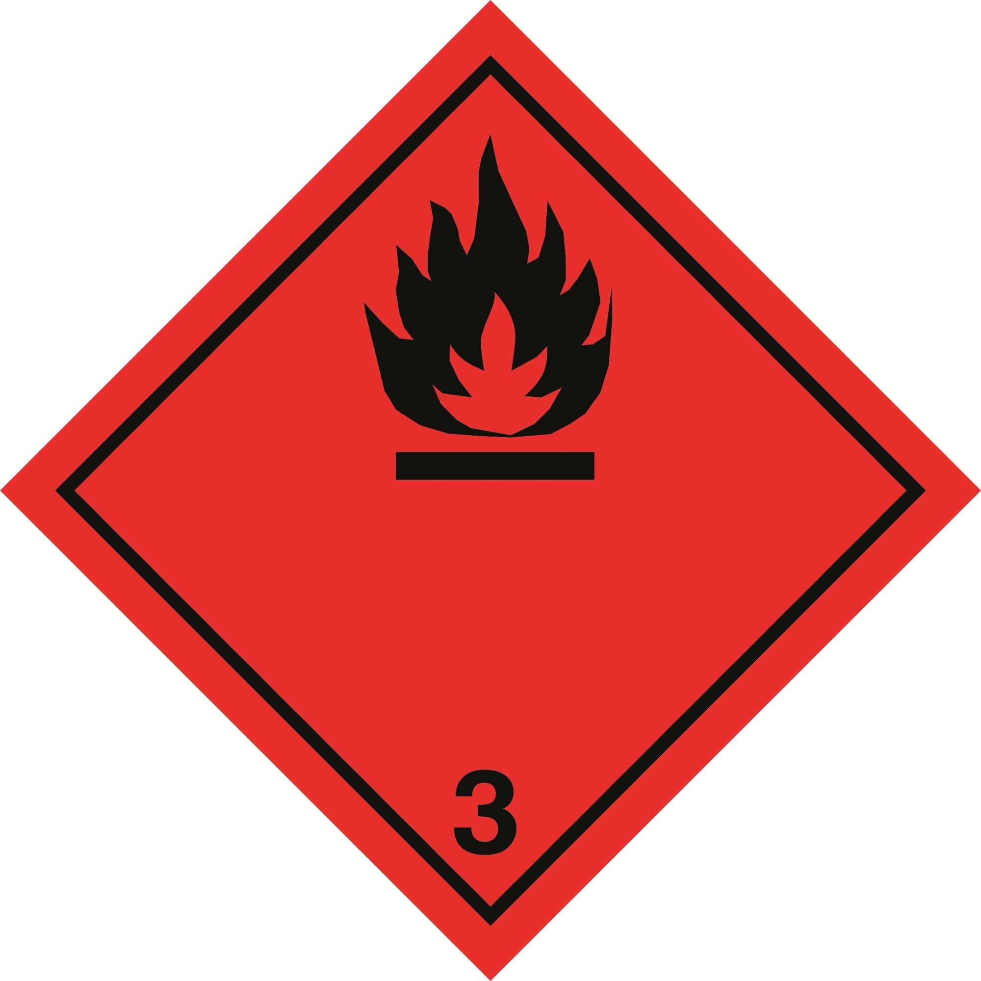 ADR skylt för märkning av transporter innehållande Brandfarlig vätska 3 Självhäftande Mått: 300x300 mm