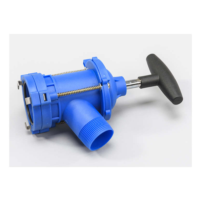 Tillverkad av polypropen (PP) ger kranen kemikalieresistens mot syror och lut, vilket gör den lämplig för avtappning av aggressiva vätskor från fat och behållare med 2-tumsgängning. Kranen skruvas direkt på sprundlocket via den 2-tums innergängan och öppnas genom att vrida handtaget, varpå locket dras ut och vätskan kan tappas av. Den utvändiga gängan är 1½ tum, och måtten är 100 × 200 × 160 mm (B × D × H).