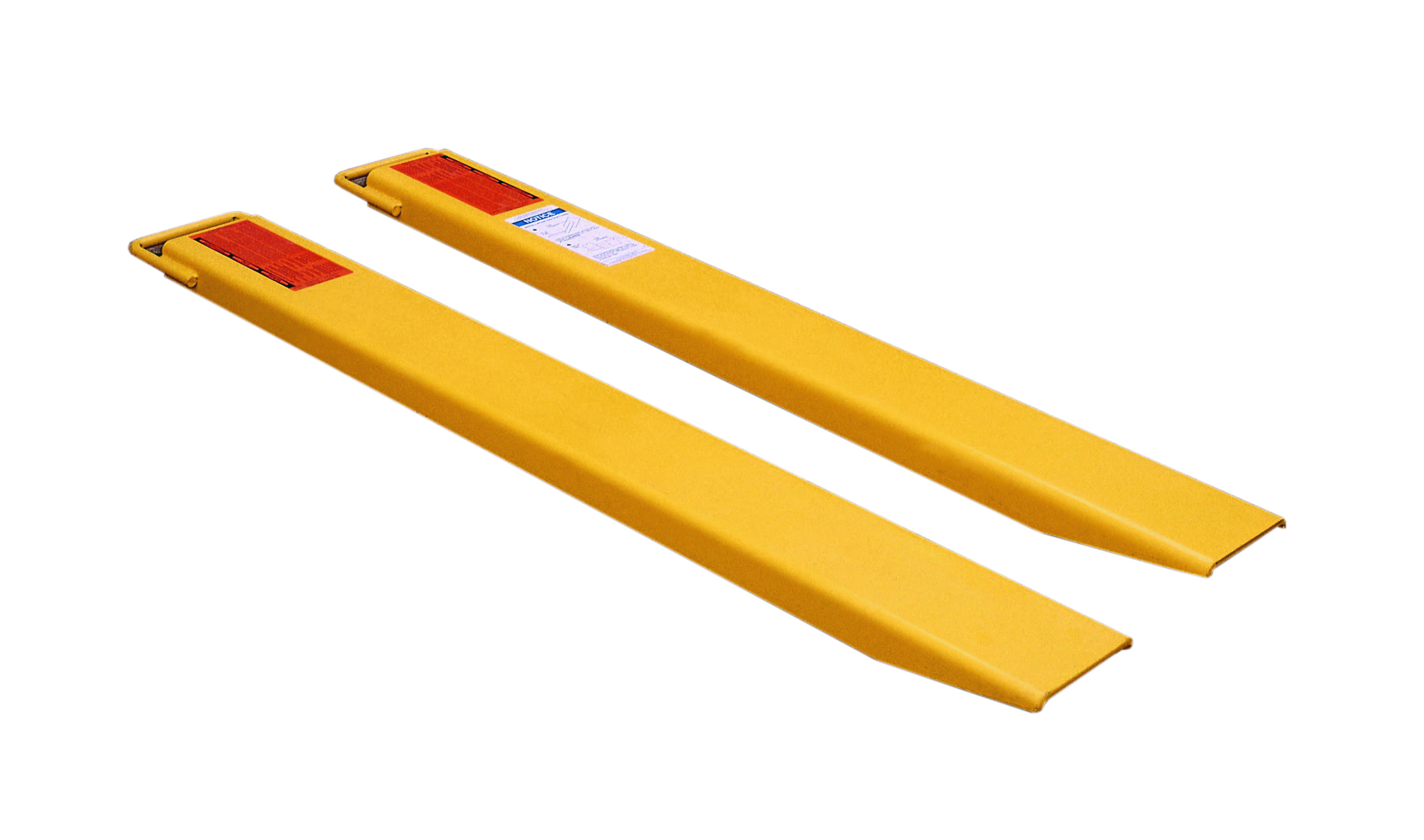 Förlängningsgaffel för gaffelbredd 150 mm. Snabbt och smidigt sätt att förlänga gafflarna på. Den har en kraftig konstruktion av stål som passar gafflar som är upp till 50 mm tjocka. Förlängaren är formad som en U-balk och hålls på plats med en fast stålram. Finns i olika versioner som passar gafflar med en bredd på antingen 125- eller 150 mm.