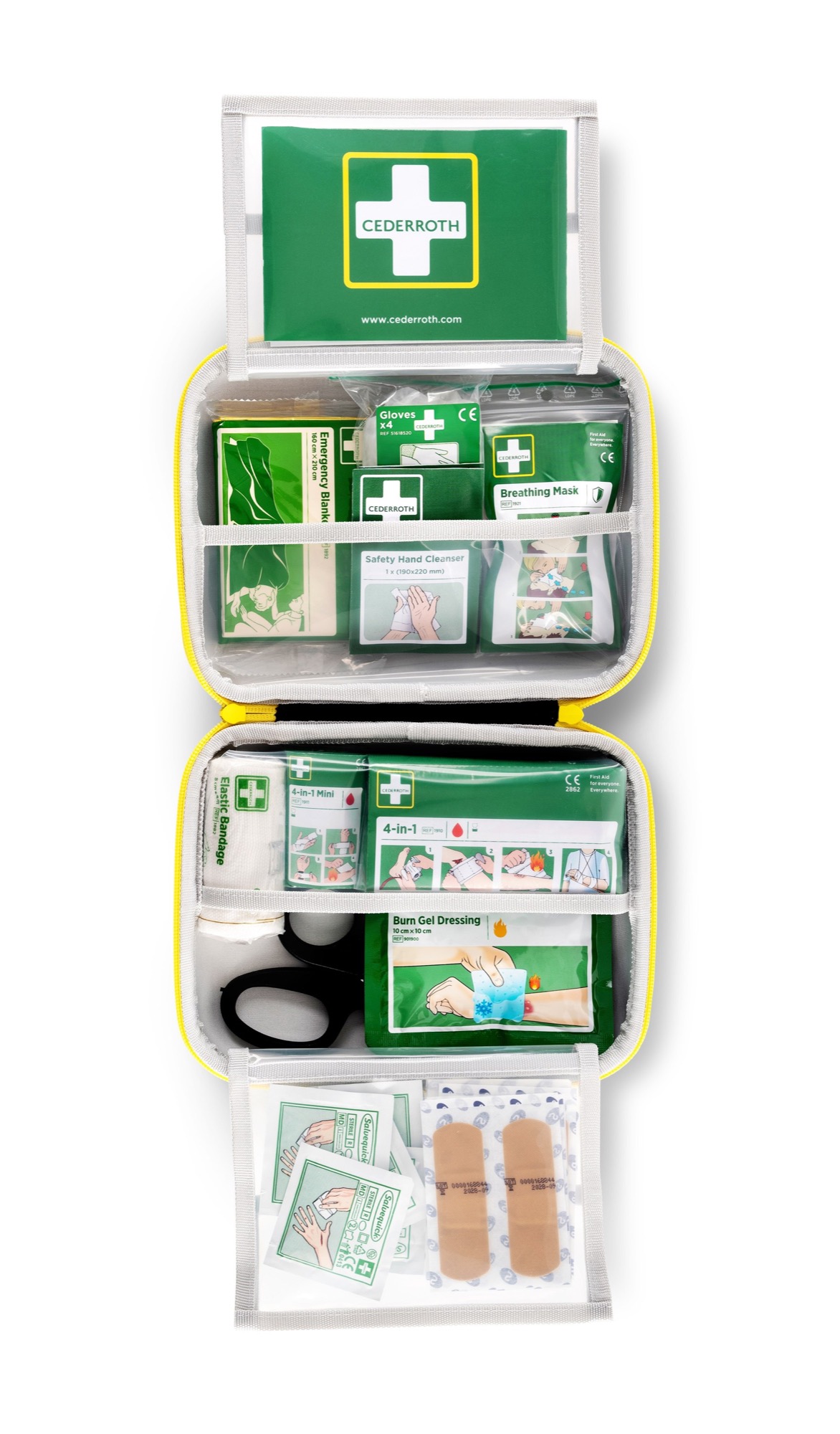 Cederroths Första Hjälpen-Kits har uppgraderats med ny design i signalfärger och förbättrad användarvänlighet, de är också utrustade med välbeprövade produkter som är enkelt utformade och försedda med tydliga instruktioner.