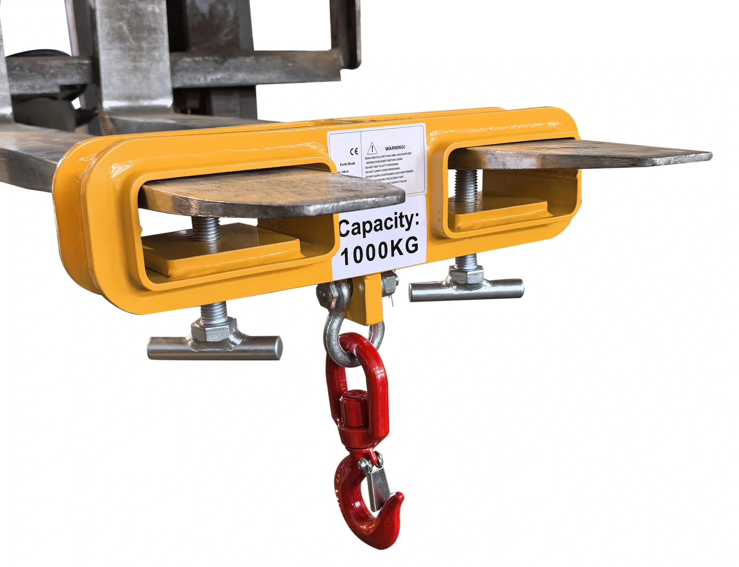 Där kranar eller traverser saknas men en truck finns tillgänglig, fungerar gaffelkroken som ett enkelt komplement för att lyfta hängande laster upp till 1 000 kg. Kroken monteras direkt på truckens gafflar via tunnlar med måtten 138 x 55 mm och är tillverkad i stål med en egenvikt på 14 kg. Med måtten 430 x 125 x 165 mm och lackering i RAL 1006 passar den för lager- och industrimiljöer där tillfälliga lyftbehov uppstår utan fast lyftutrustning.