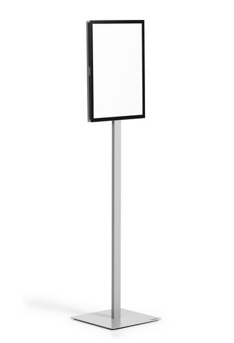Detta är en golvskylt – den står fristående och används för att visa tillfällig eller fast information på synlig plats, som entréer eller mässytor.