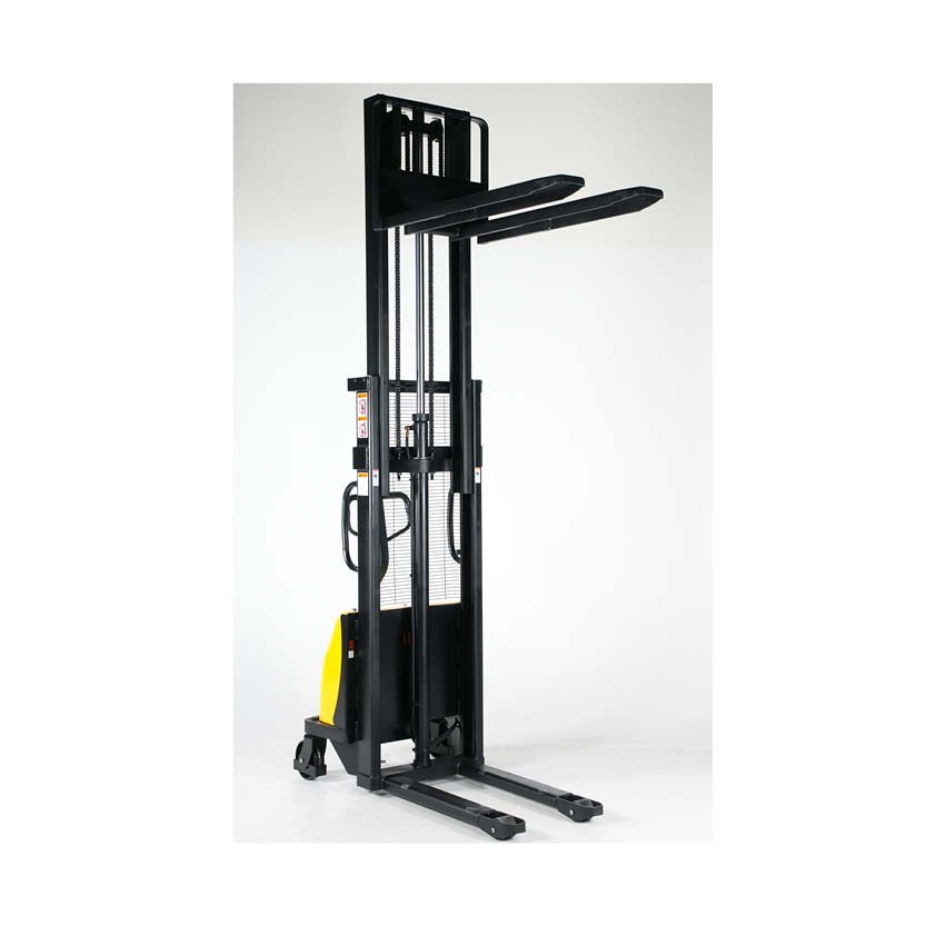 För lagerarbete där gods behöver lyftas och staplas utan tillgång till eldrivna truckar erbjuder denna handdragda staplare ett tillförlitligt alternativ med batteridriven lyftmotor. Stålkonstruktionen bär upp till 1 000 kg och lyfter lasten från 90 mm till 1 600 mm höjd med en lyfthastighet på 80 mm/sek under last. Gafflarna med nylonhjul är anpassade för hårda golvytor, och det inbyggda 12V/120Ah-batteriet säkerställer lång drifttid per laddningscykel.