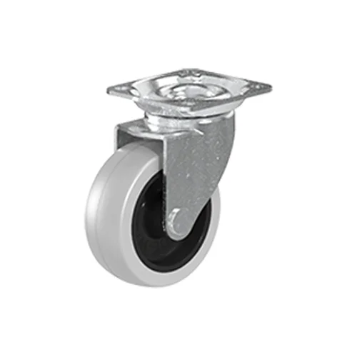Monteringen sker via platta och bygeltjockleken är 1,5 stålplåt. Offset på 17,5 mm ger ett mjukt och stabilt svänguttag, även i trängre passager. Hjulet tål temperaturer från -20°C till 50°C, vilket gör det flexibelt för varierande miljöer.