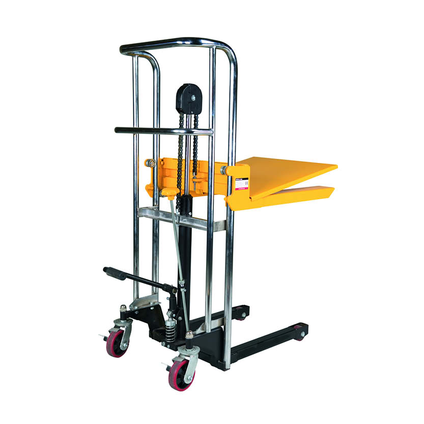 De är utrustade med gafflar samt en löstagbar plattform. Staplaren har en fällbar pumpstång för lyft samt ett manuellt handtag för sänkning. Staplaren har hjul av polyuretan vilket används ofta till dig som vill ha mjuka samt tysta hjul. De även är väldigt tåliga mot spån samt grus.