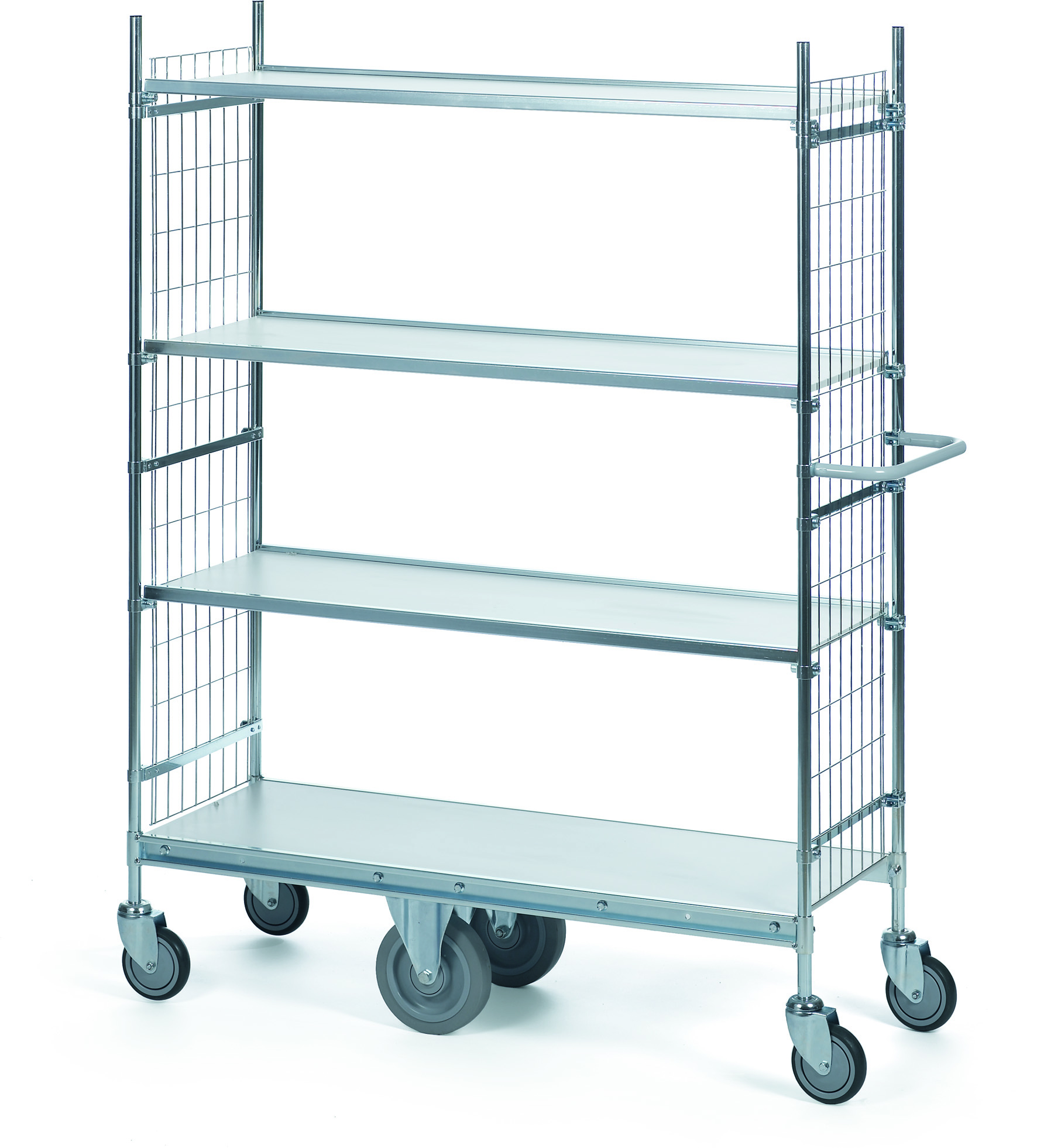 Smidig och rejäl hyllvagn med fyra flexibla hyllplan.