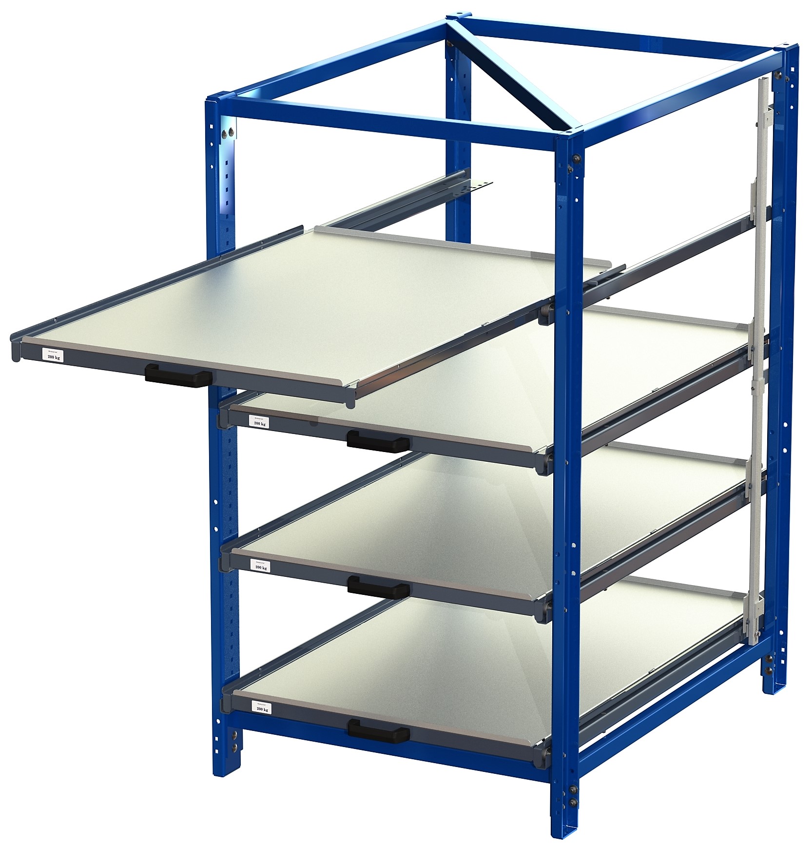 Industribyrå 4 hyllor, 200kg, 70% utrag med tippskydd