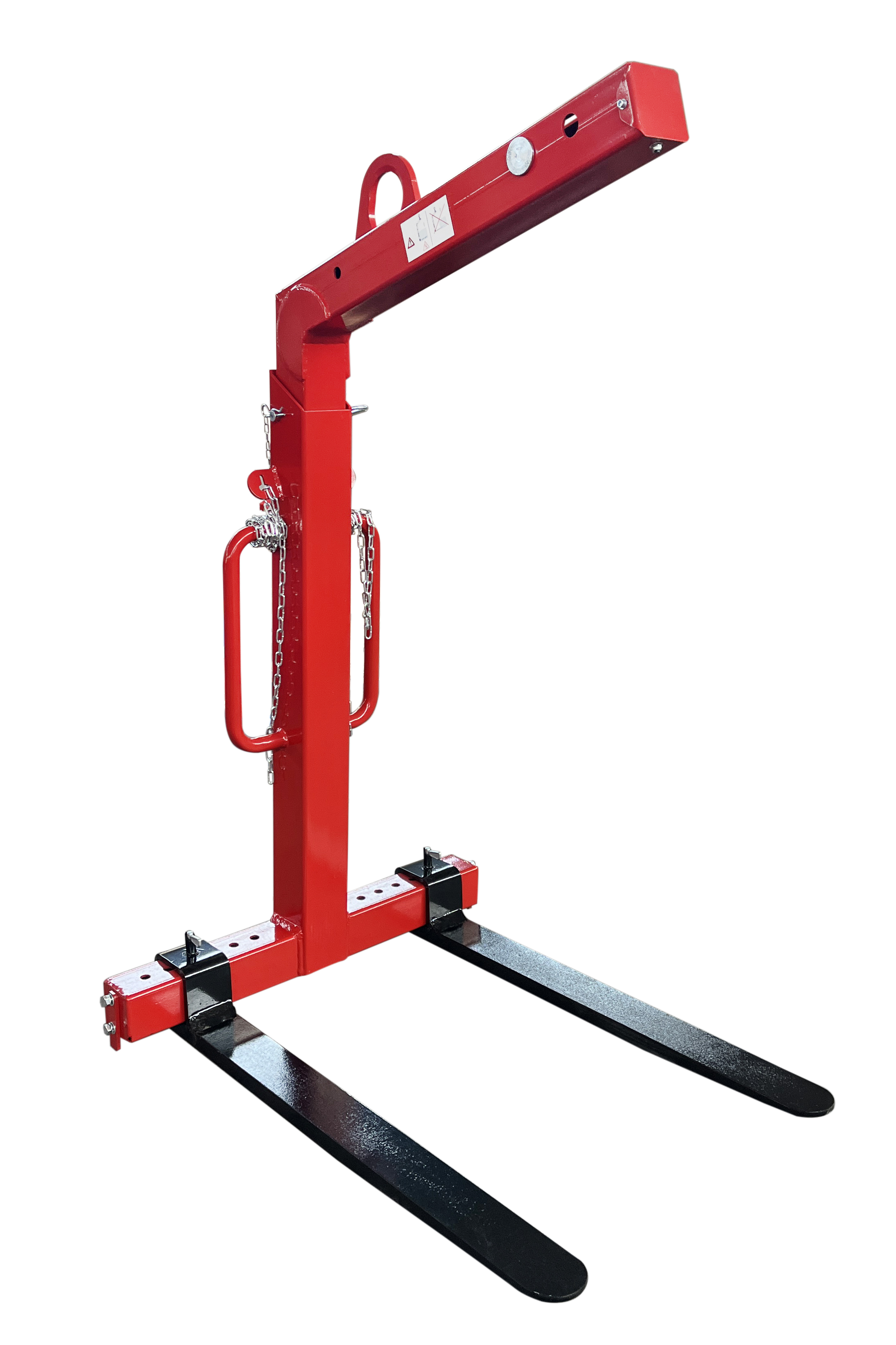 Monteras på kran eller traversbalk och möjliggör precisionslyft av pallar och gods upp till 1 000 kg utan att lasten tippar. Den självbalanserande funktionen håller gafflarna vågräta under hela lyftet, vilket minskar risken för glidning och förskjutning. Med justerbar total gaffelbredd mellan 350 och 900 mm passar den ett brett urval av palltyper och är lämplig för användning i lager, produktion och på terminaler.