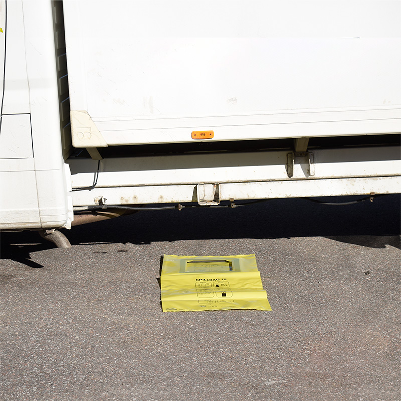 Tack vare ett integrerat flytelement rättar karet upp sig självt när det placeras ut, vilket gör det lämpligt för snabb insats vid läckage eller spill. Det tillverkas i polyeten och rymmer upp till 15 liter vätska. Hopfällt mäter det 500 × 550 mm, vilket underlättar förvaring, och utfällt täcker det en yta på 1 100 × 500 mm — anpassat för lagerlokaler och produktionsmiljöer med begränsat utrymme.
