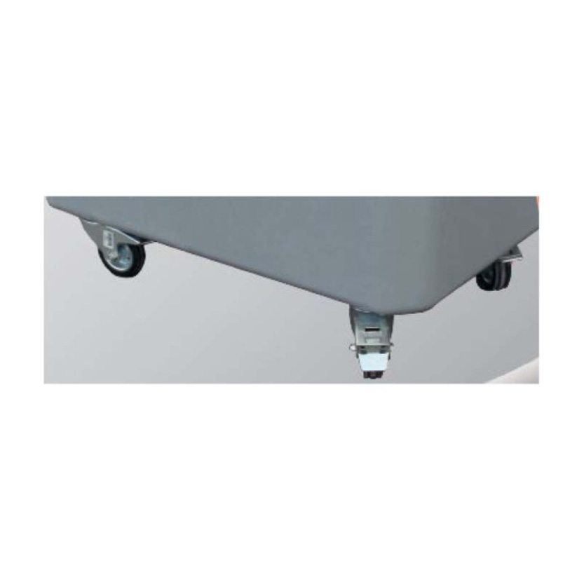 Länkhjulssettet omvandlar redskapslådan på 250 liter till en mobil enhet som enkelt kan förflyttas längs golv i lager, verkstäder och produktionsmiljöer. Satsen består av två svängbara hjul med broms och två fasta hjul, vilket ger stabil styrning vid förflyttning. Maxbelastningen uppgår till 70 kg.