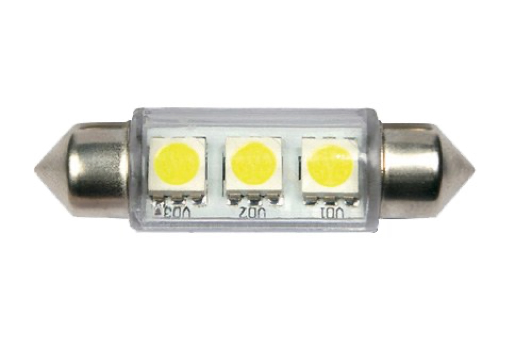 LED-lampa med SV8.5-sockel och 3 kraftfulla SMD 5050-dioder. Ger jämnt ljus och låg värmeutveckling.