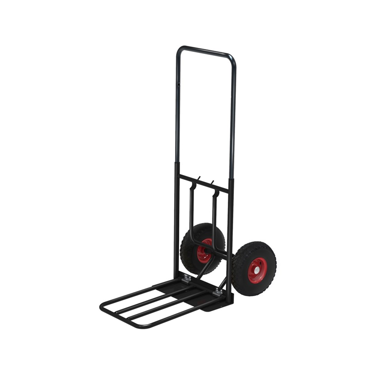 Denna lätta magasinkärra i stål gör det enkelt att flytta gods på arbetsplatsen. Det fällbara handtaget och hyllplanet gör att kärran tar liten plats när den inte används. Har ergonomiska handtag som ger ett bra grepp, även vid hantering av tyngre föremål. Vagnen har en klassisk design samt en snygg och diskret svart färg som gör att den passar in i alla miljöer. Klarar en statisk belastning på 150 kg. Kommer med Luftgummihjul.