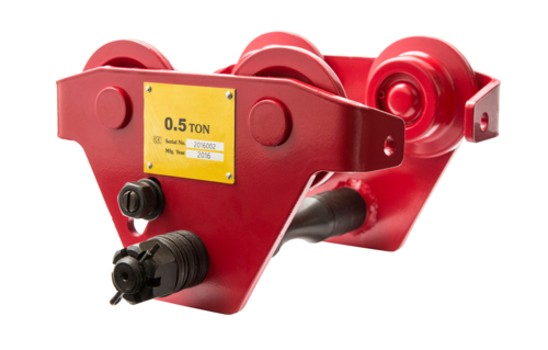 Manuell blockvagn med lågbyggd konstruktion. Vagnen har stor ställbarhet som gör att den kan monteras på de flesta balkar. Denna har 500kg som maxvikt.