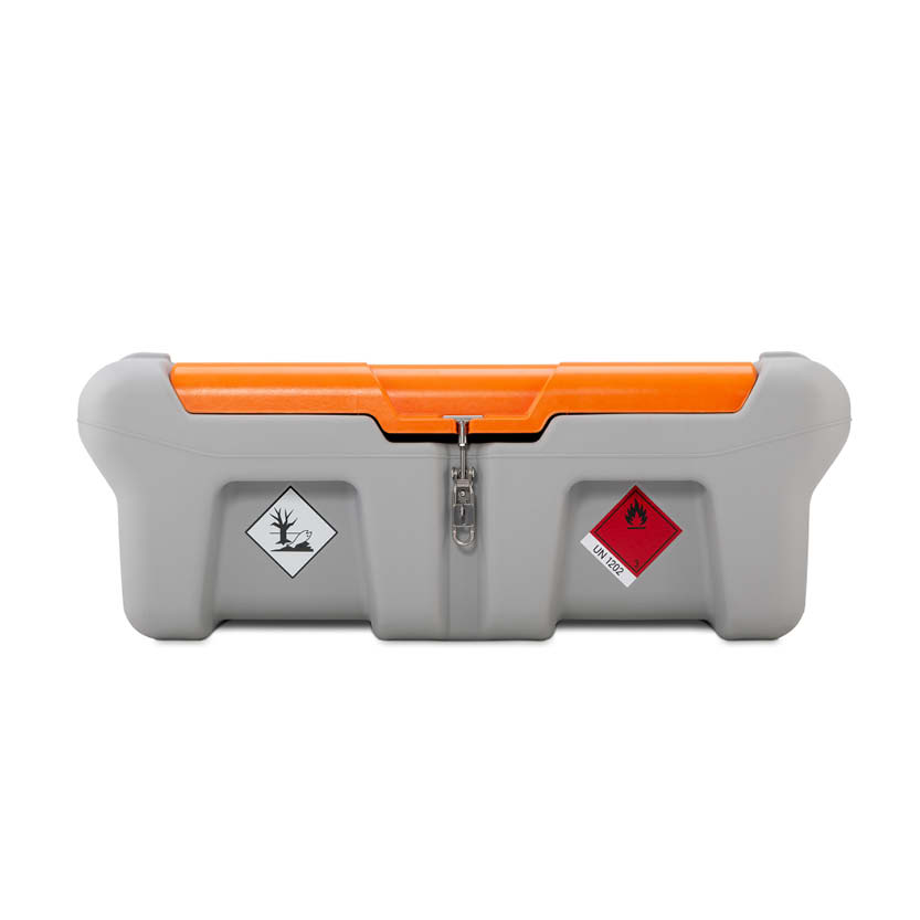 För byggarbetsplatser, lantbruk och entreprenadverksamhet där maskiner behöver tankas på plats erbjuder denna förflyttningstank en praktisk lösning utan behov av fast infrastruktur. Tanken rymmer 210 liter diesel och är tillverkad i polyeten, vilket ger god kemikaliebeständighet och låg egenvikt på 30 kg. Den inbyggda 12V-pumpen levererar ett flöde på 30 liter per minut via en 4 meter lång slang med automatisk pistolventil, och tanken uppfyller ADR 1.1.3.1 c) med måtten 1 180 × 790 × 460 mm.
