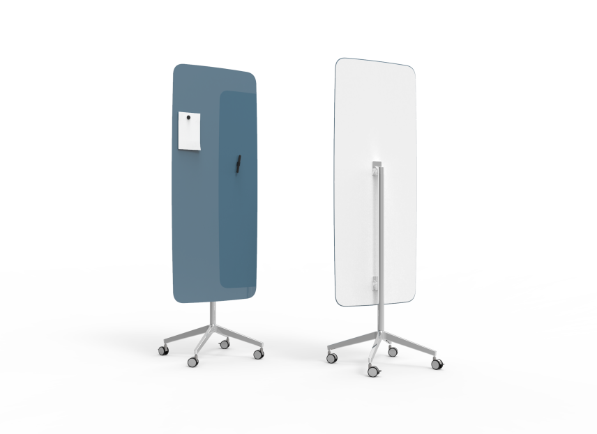 Mobil skrivtavla med en unik rundad flow-form som helt saknar raka linjer, vilket ger en mjuk känsla i rummet. Tillverkad i härdat optiskt glas som ger en exakt färgåtergivning och lyster. Fötter och ben i polerad aluminium och vitlackerad baksida.