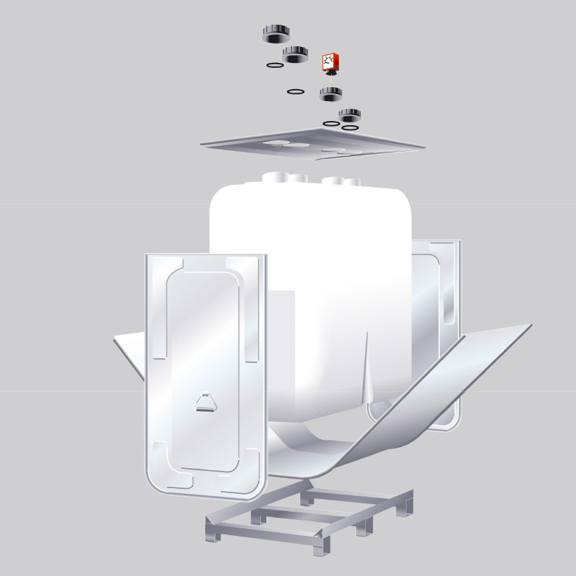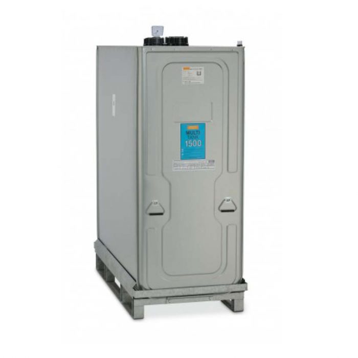 Lagring och transport av diesel, spillolja och färskolja ställer krav på godkänd behållare som klarar både stillastående depå och förflyttning på väg. Tanken är dubbelmantlad med ett yttre galvaniserat stålhölje och en inre behållare i HDPE, och uppfyller ADR 6.5.4.4.1b samt certifikat Z-40.21-432 / D/BAM6404/31HA1 för vätskor med flampunkt över 55 °C. Med en kapacitet på 1 500 liter, en egenvikt på cirka 165 kg och måtten 1 640 × 800 × 1 910 mm levereras den monterad på en förstärkt stålpall anpassad för truckhanteing.