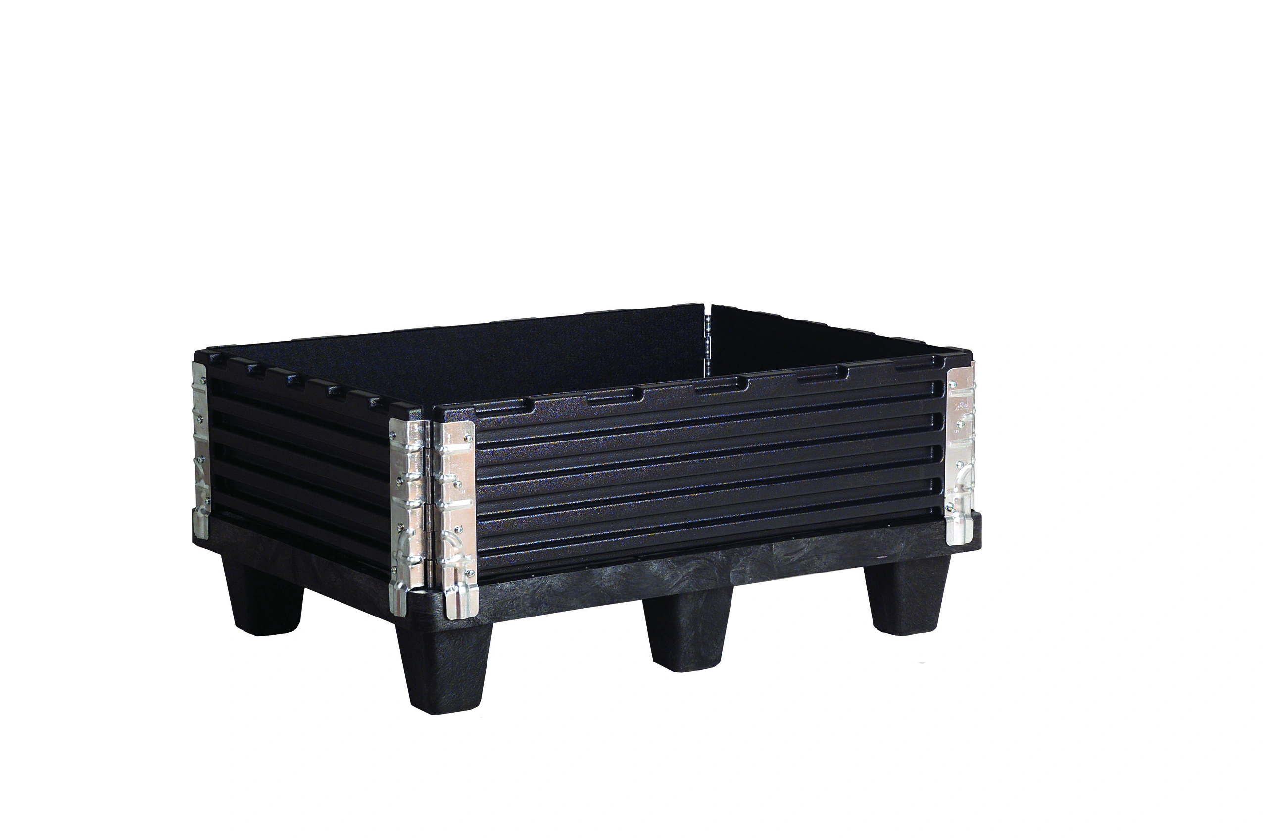 Tillverkad av ABS-plast och extra förstärkt med hörnbeslag i metall. Fungerar både till trä- och plastpallar. Stabil och slagtålig. Levereras omonterad och är lätt och flexibel. Tar lite utrymme när de inte används och har en lång livslängd.