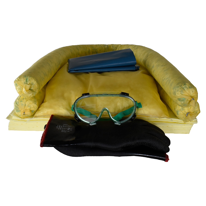 Vid kemikaliespill under transport säkerställer detta påfyllnadskit att ADR-väskan alltid är redo för insats. Satsen innehåller 24 absorberande ark (40 × 50 cm), två ormar (Ø 7,5 × 120 cm), en kudde (40 × 40 cm), skyddshandskar, skyddsglasögon samt avfallspåse — med en total absorptionskapacitet på cirka 34 liter. Avsett för fordon som transporterar kemikalier och omfattas av ADR-regelverket.