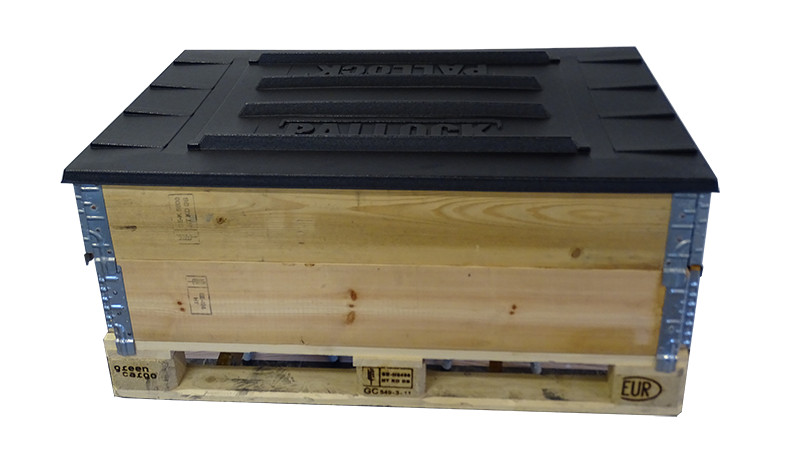 Pallock som tål det mesta (EUR-pallformat). Fungerar både till träkrage och plastkrage. För att garantera en stabil och trygg höjdstapling är locken försedda med klackar.