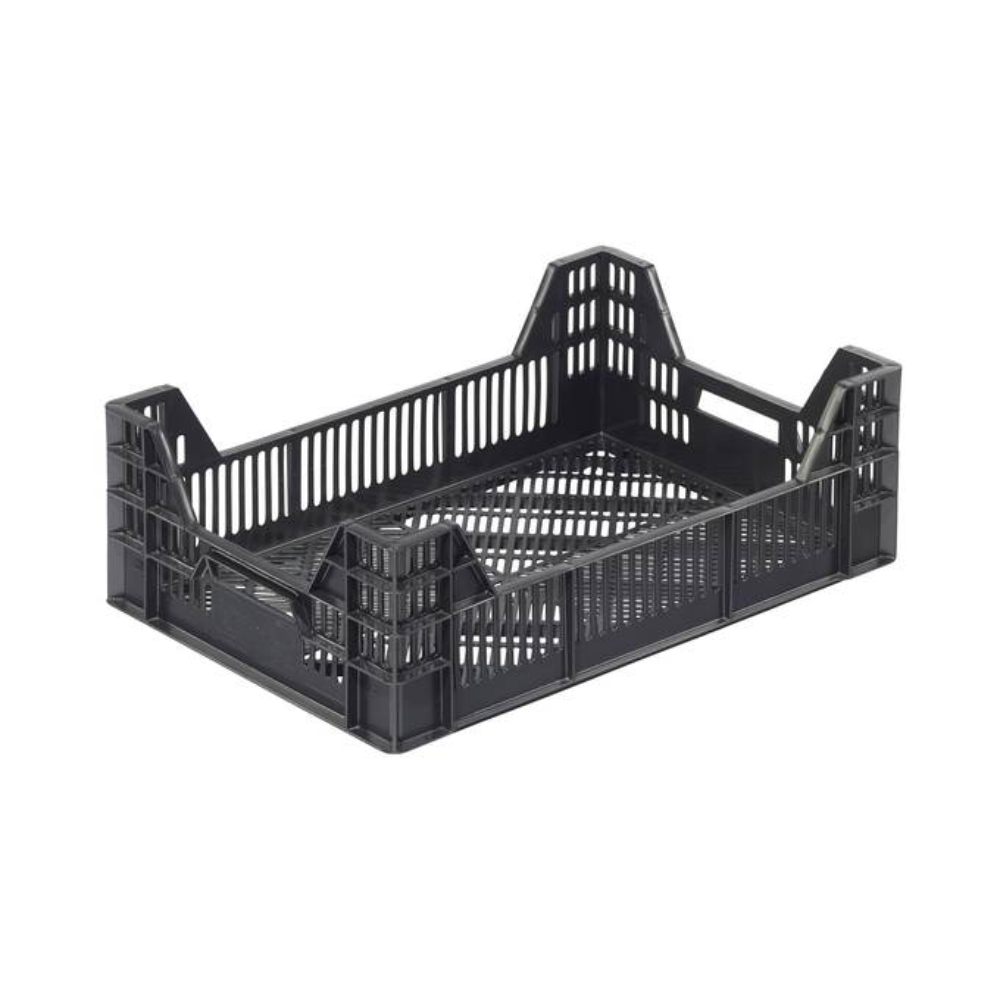 En praktisk livsmedelsgodkänd brödback i HDPE-plast med handtagshål passar perfekt för livsmedelsförvaring. De höjda hörnen ger ett utrymme mellan lådorna när de staplas vilket ger dig en enkel överblick av innehållet samt möjlighet att plocka ur varor utan att behöva stapla av lådorna från varandra.