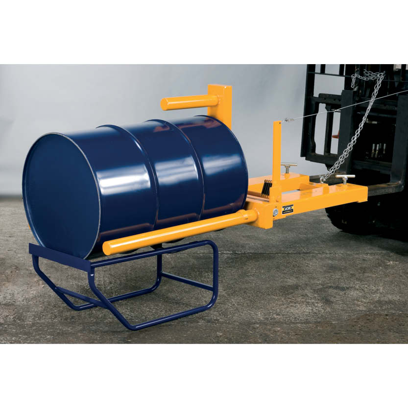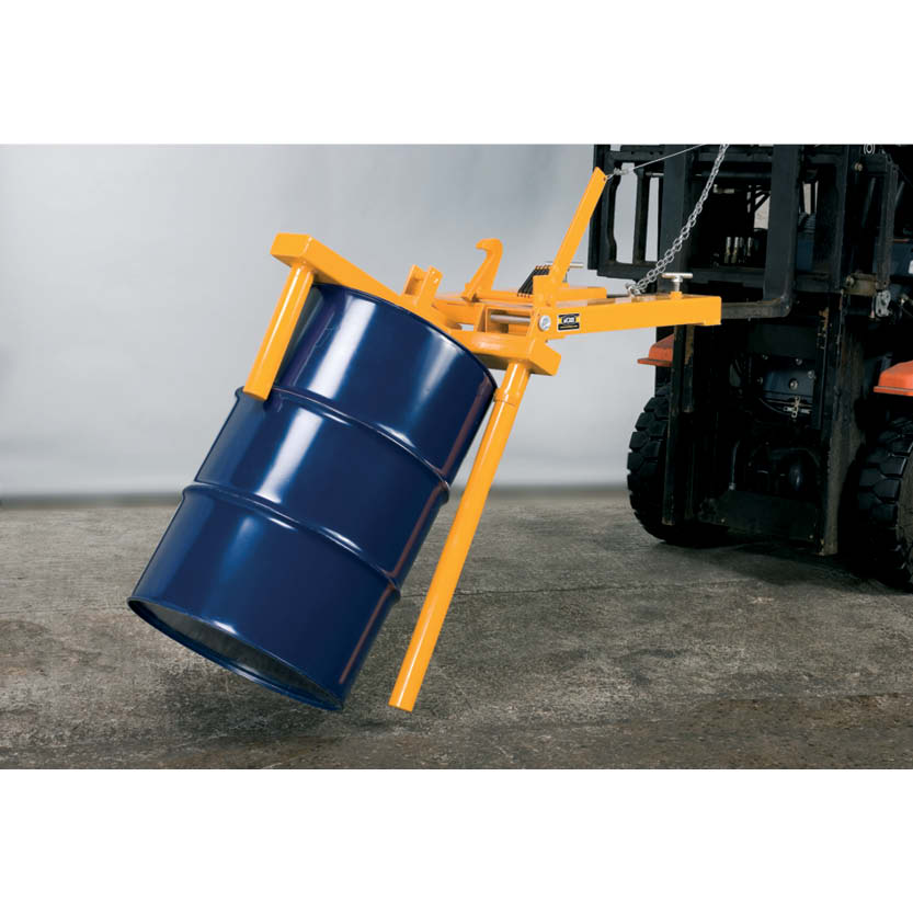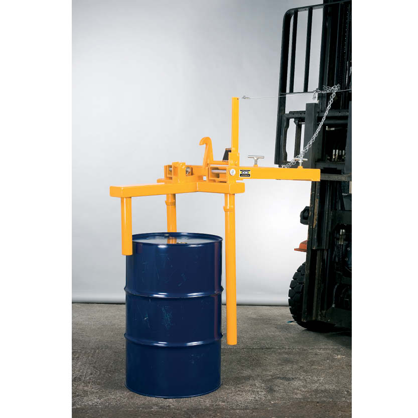Fatgriparen PK34 är tillverkad av pulverlackerat stål och hanterar både 200-liters plast- och plåtfat med en lyftkapacitet på 400 kg. Den gula färgsättningen ger god synlighet i lagermiljö och CE-märkningen säkerställer att utrustningen uppfyller gällande säkerhetskrav. Med en egenvikt på 75 kg är griparen byggd för krävande industriellt bruk.