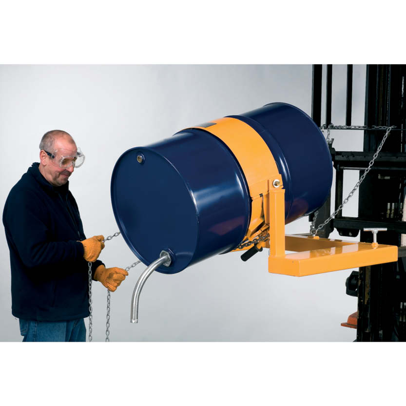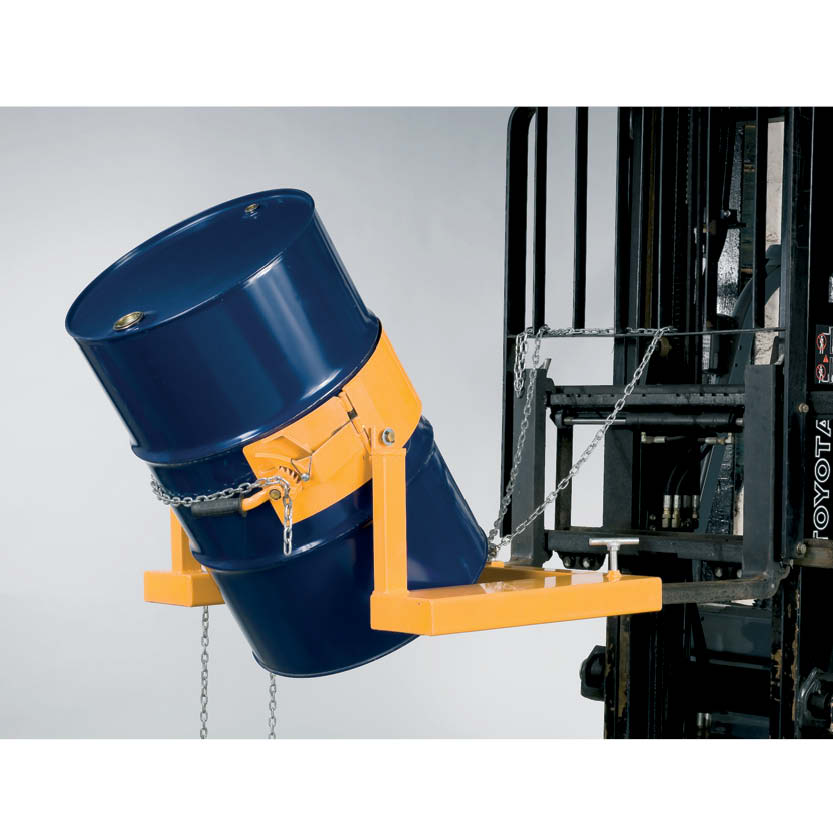 Konstruerad för montering direkt på truckgafflar hanterar PK40 plåtfat upp till 200 liter och klarar en last på 365 kg. Det pulverlackerade stålutförandet ger hållbarhet i krävande lagermiljöer, medan den gula färgen bidrar till synlighet i arbetsområdet. Fatet kan roteras och ompositioneras säkert utan manuell hantering, vilket minskar belastningen på personal vid tömning och fyllning. Mått: 535 × 995 × 680 mm, egenvikt 70 kg.