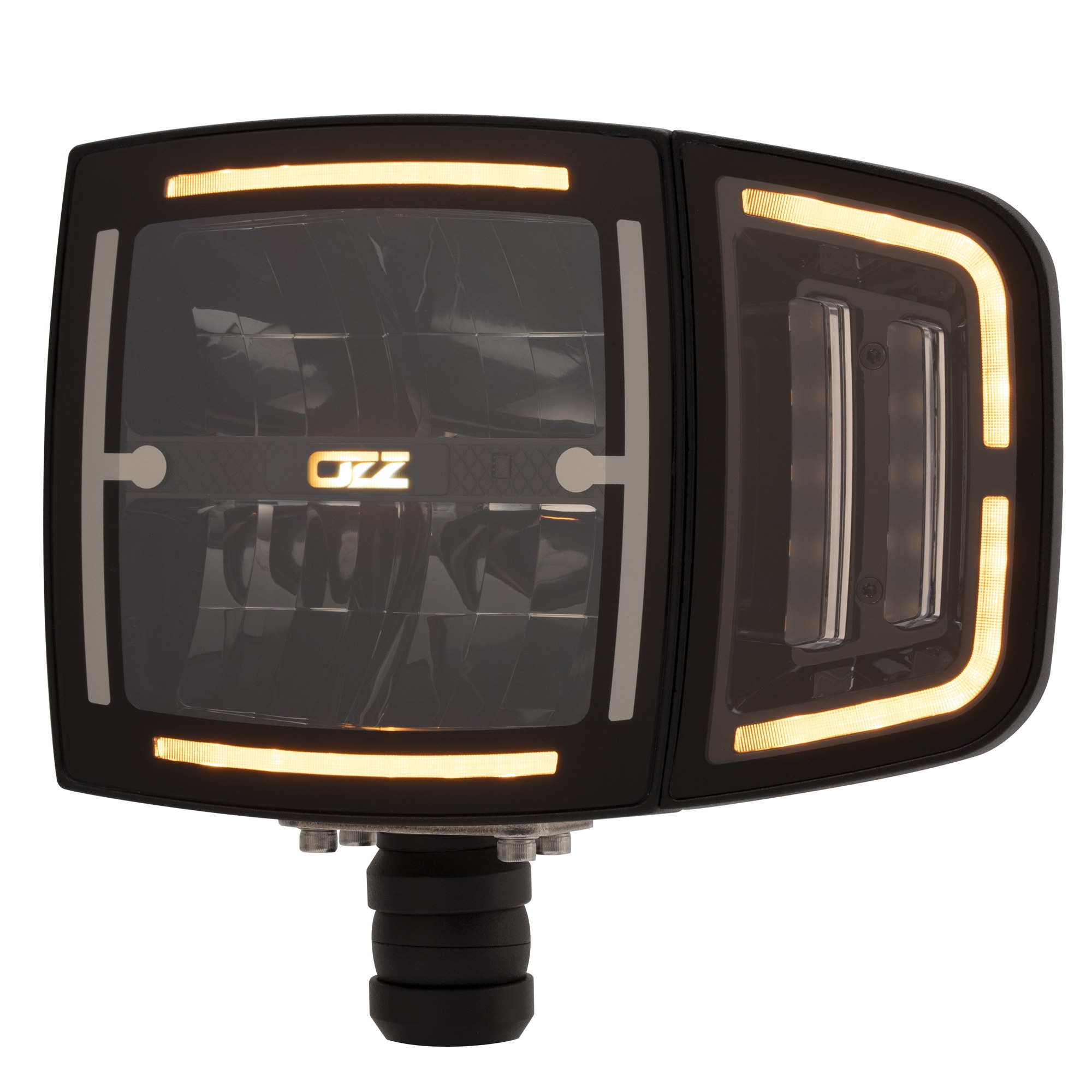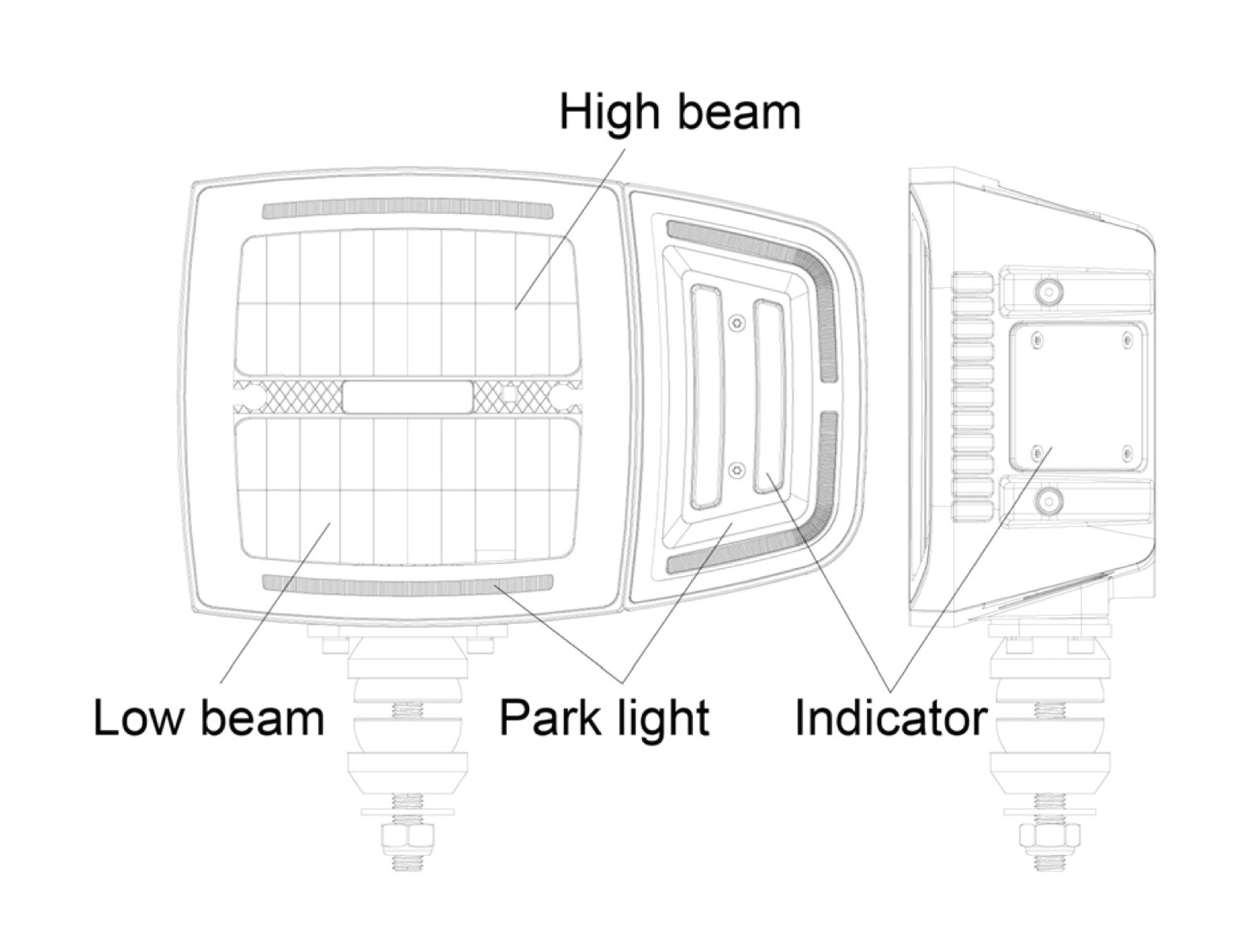 Ploglampa anpassad för montering på höger eller vänster sida av fordon. Utrustad med värmelins.
