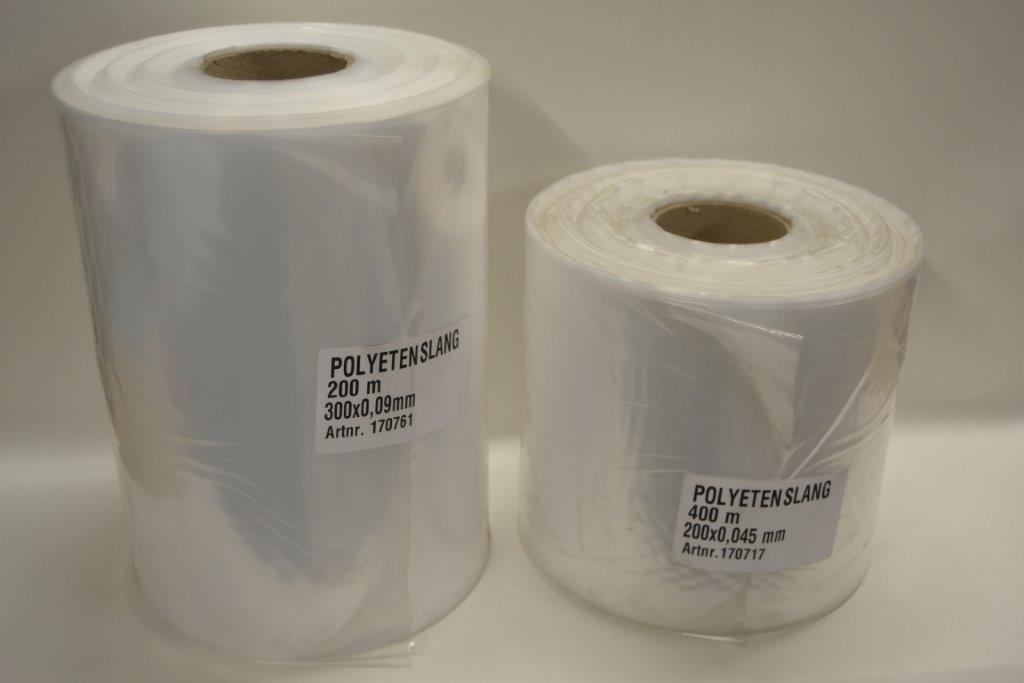 En smidig och stark slang gjord av polyeten. Slangen är 600 mm och har en tjocklek på 40 micrometer. Den är 400 m/rulle.