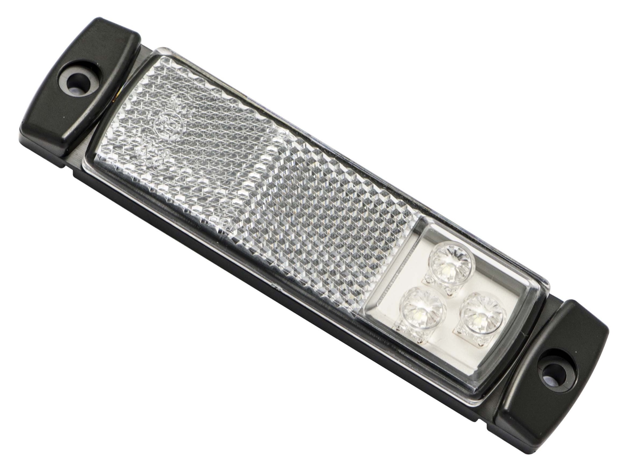 Vit LED-positionslampa med 5 meter kabel, anpassad för 12–24V-system. Ger tydlig framåtriktad belysning med låg energiförbrukning och hög prestanda. Idealisk för användning på släp, lastbil eller arbetsfordon.
