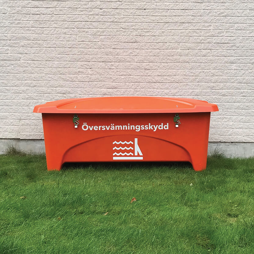 Vid översvämning är snabb tillgång till rätt utrustning avgörande — den orangefärgade förvaringslådan samlar hydrosäckar, hydrobarriärer och personskydd på ett och samma ställe för omedelbar insats. Tillverkad av väderbeständig glasfiber klarar den krävande utomhusmiljöer och håller innehållet torrt och skyddat. Med ett innervolym på 475 liter och innermått på 1 620 × 720 × 600 mm finns utrymme för en komplett beredskapsuppsättning, anpassad efter verksamhetens specifika behov. Egenvikten är 35 kg och lådan levereras med tydlig text som identifierar innehållet vid akuta situationer.
