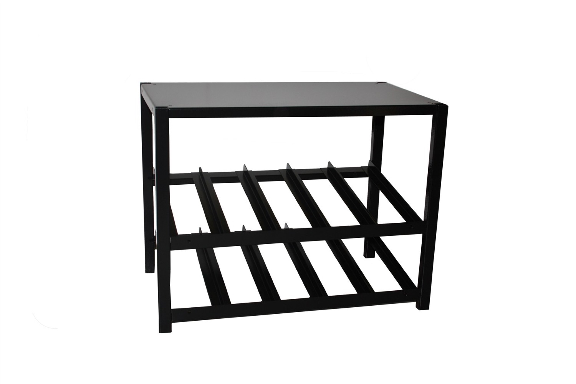 2 Nivåer med vardera 5 fack samt ett hyllplan överst. Nivåhöjd: 130mm