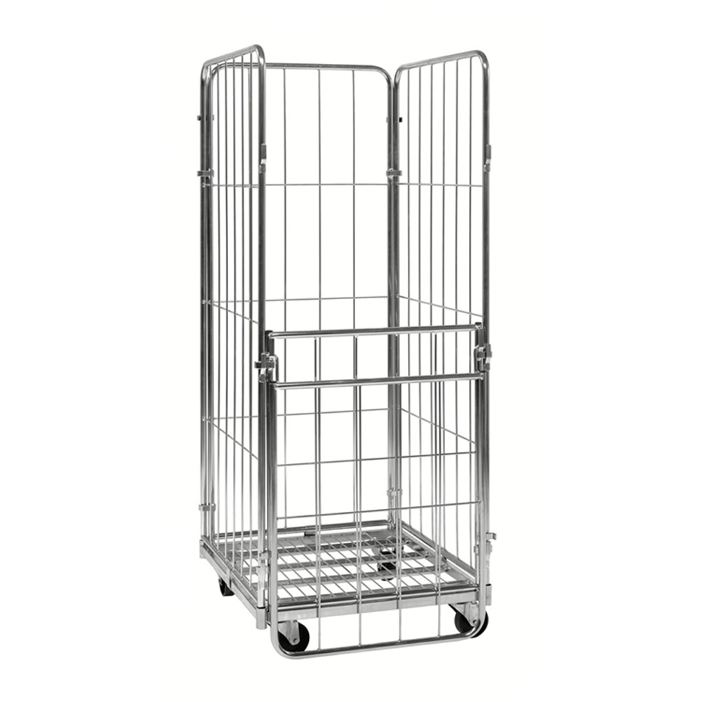 Rullcontainer med fyra gallersidor i hög kvalitet. Den fungerar utmärkt till förvaring och transport av många olika typer av gods inom lager, butik och industri. Det stabila gallret gör att lasten står still på sin plats, även när containern är i rullning. Den är utrustad med fyra stycken hjul, varav två är länkhjul - något som underlättar vid transportering.