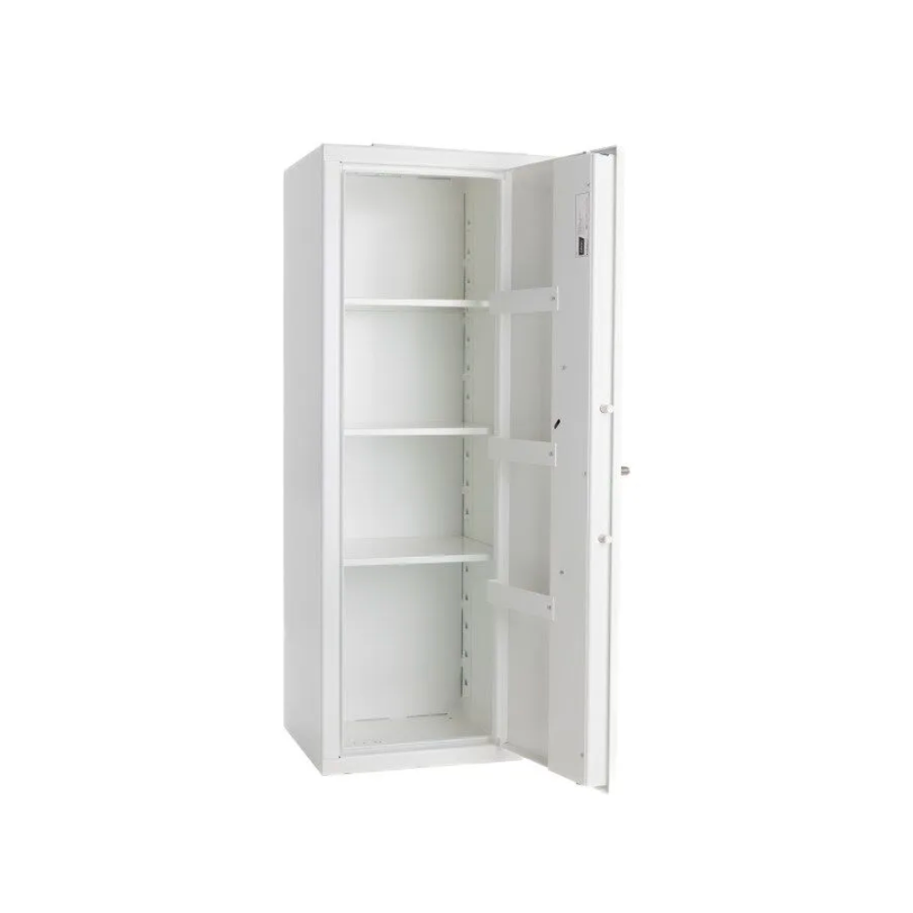 Specifikation Bredd (mm) 550 Höjd (mm) 1500 Djup (mm) 480 Innermått Bredd (mm) 542 Innermått Höjd (mm) 1492 Invändigt Djup (mm) 400 Egenvikt (kg) 160 Dagmått BxH (mm) 425x1470 Lås Kodlås Säkerhetsklass SSF 3492 - Dokument