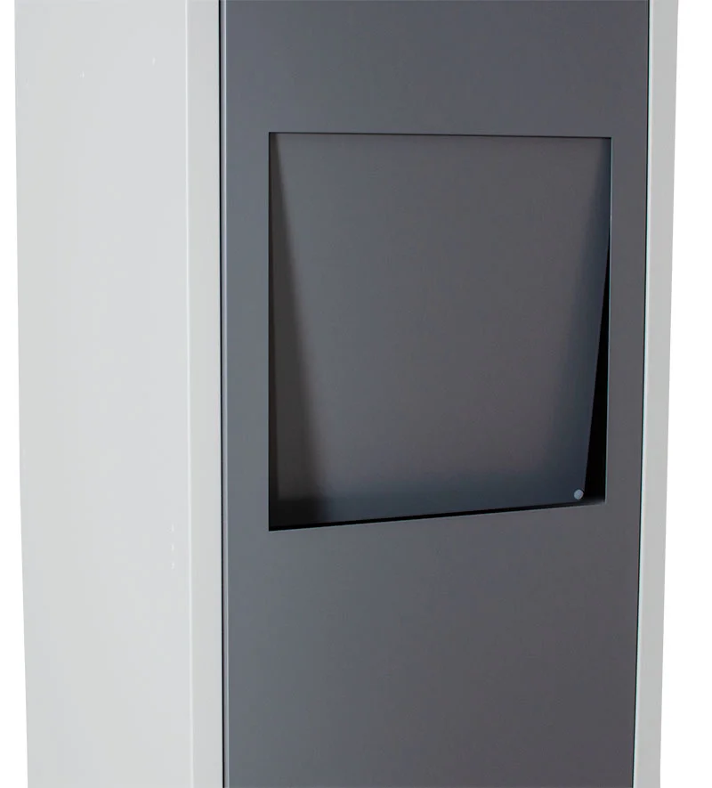 Skåp för uppsamling av smutstvätt. Skåpet har inkastlucka i dörren ochdet finns hållare för 120 l säck inne i skåpet.