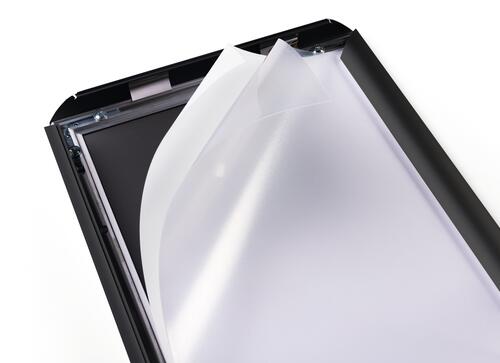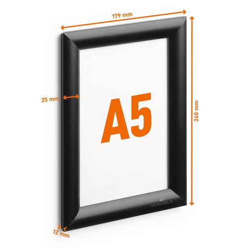Snäppram aluminium a5 svart bidrar till en enklare och mer organiserad arbetsdag. Stadig snäppram av aluminum. Snabbt samt lätt att byta motiv tack vare beprövad snäppöppning samt stängning av sidoprofilerna. Lågreflekterande, uv-beständig frontplast. Slagtålig baksida av polystyren. Gerade hörn