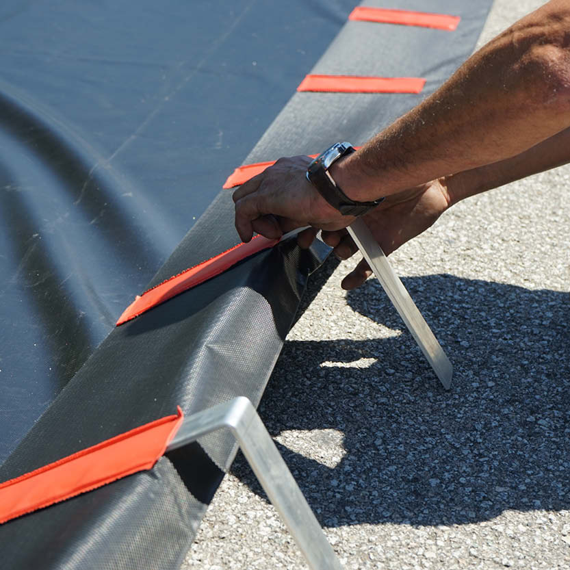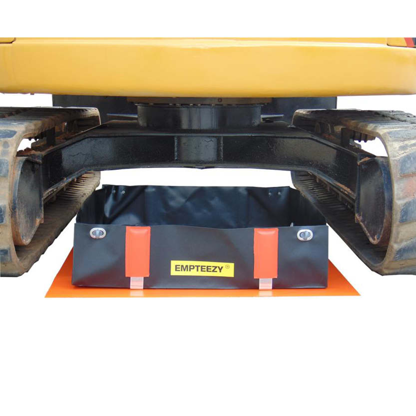 Där ett fast uppsamlingskärl inte är praktiskt genomförbart — vid tillfälliga arbetsplatser, under service eller vid transport av fat — erbjuder denna hopfällbara spillpool en flexibel lösning. Konstruktionen i svetsad PVC förstärks av aluminiumskenor och rymmer upp till 225 liter, vilket motsvarar innehållet i ett 200-liters fat. Yttermåtten är 950 × 950 mm med en höjd på 250 mm, och en medföljande axelväska underlättar förflyttning mellan arbetsplatser.
