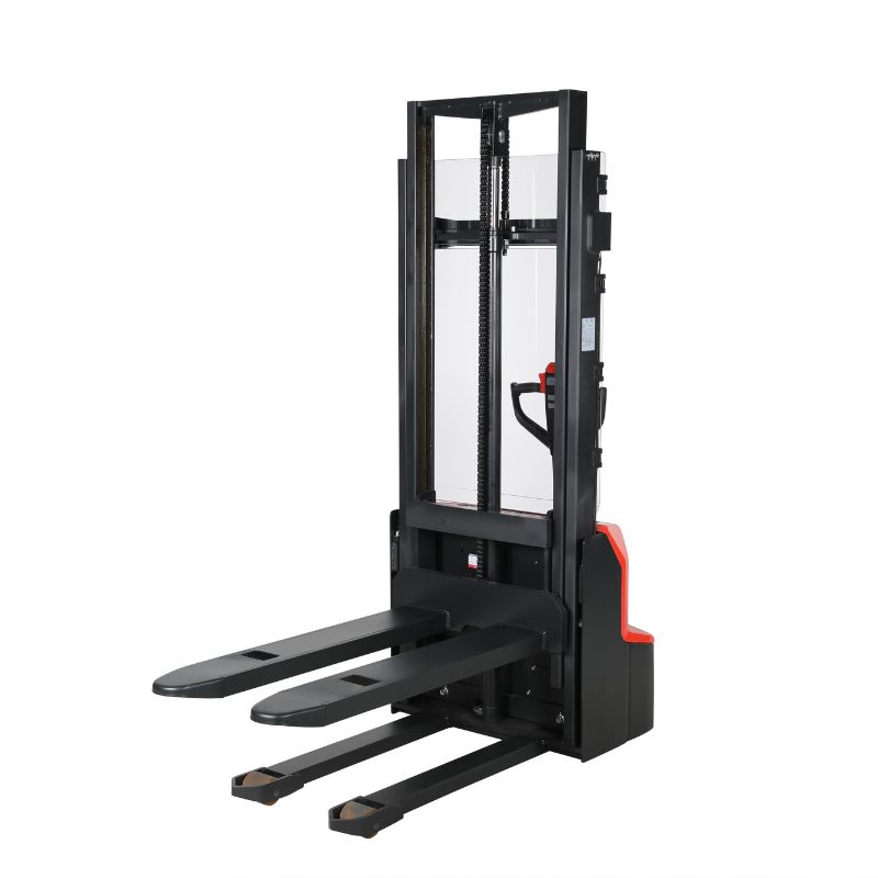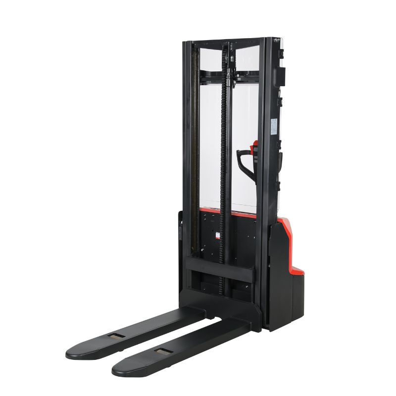 Med en maximal lyfthöjd på 2 900 mm och en lyftmotor på 2,2 kW hanterar staplaren gods upp till 1 200 kg med stabil precision. Polyuretanhjulen ger ett skonsamt grepp mot underlaget och lämpar sig väl för hårda lagergolv där markytan behöver skyddas. Litiumbatteriet driver både driv- och lyftfunktion, med en lyfthastighet på 120 mm/s under last och en svängradie på 1 350 mm som gör den hanterbar i trånga utrymmen. Gaffellängden på 1 150 mm och en minsta lyfthöjd på 86 mm passar standardiserade pallar i lager- och distributionsmiljöer.