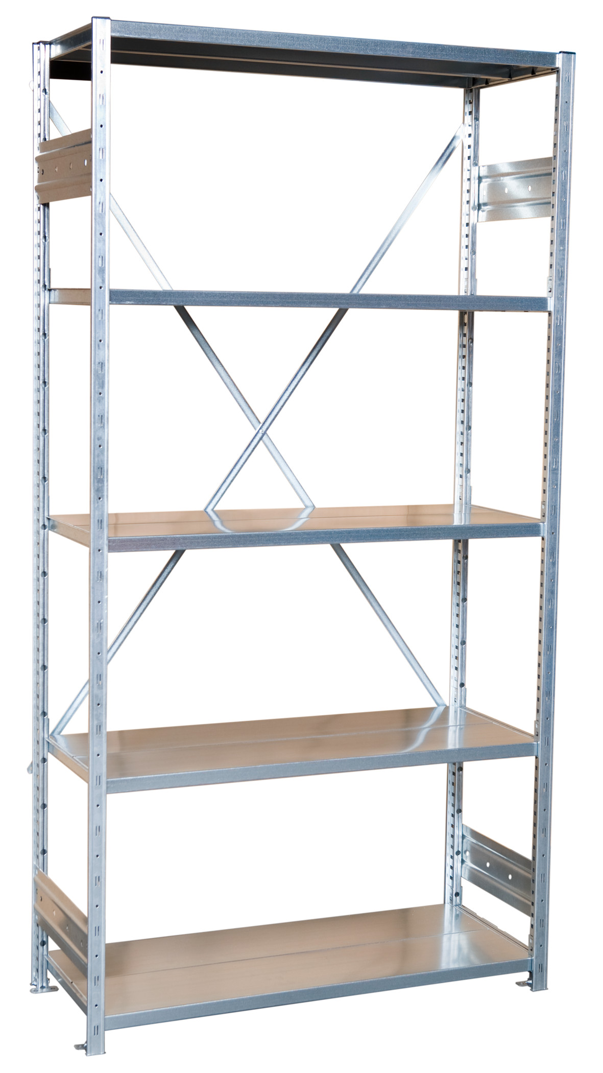 Ett hyllställ i hög kvalité med galvade detaljer, som tack vare sin stabila och rejäla konstruktion fungerar utmärkt i de flesta lagersammanhang. Är med sin flexibilitet ett utmärkt alternativ för de flesta typer av lagerhållning då hyllorna både kan byggas på med flera sektioner och anpassas efter önskat hylldjup. Var fjärde sektion stadgas upp med ett ryggkryss och hyllorna levereras med expanderbultar för att på ett säkert sätt kunna sättas fast i golvet. Varje hylla har en maxbelastning på 150 kg. Denna startsektion har en höjd på 2500 mm, finns med fem olika djup och har i standardutförandet fyra hyllplan. Dessa hakas fast i kraftiga bärbalkar, vilket både ger en säker förvaring med pålitliga hyllplan och fungerar stabiliserande för gavlarna.