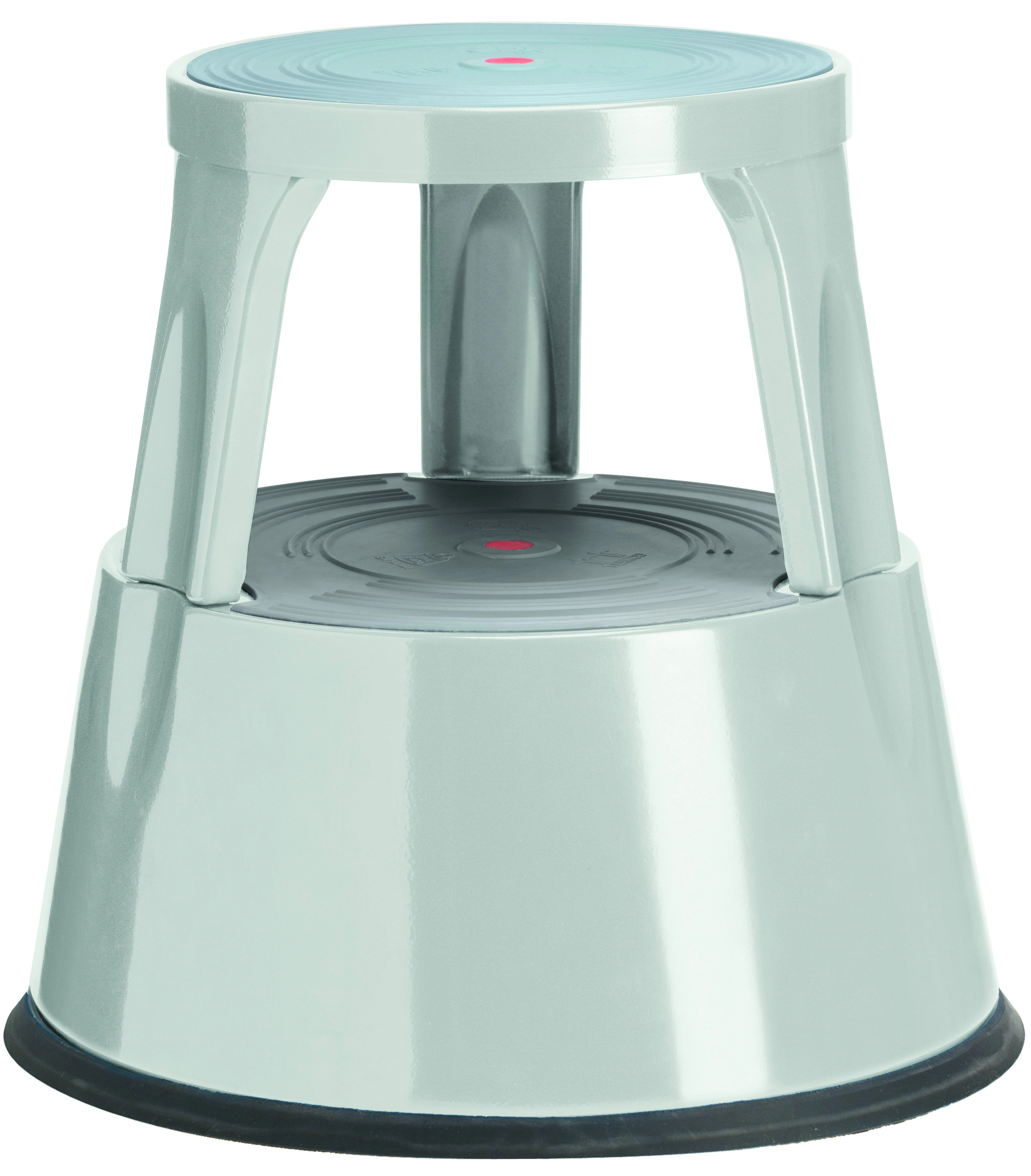 Robust och pålitlig stegpall lämpad för lager, kontor och butik. Utrustad med fjäderbelastande hjul som vid belastning gör att pallen står stadigt och säkert. De två fotstegen är klädda i räfflat gummi för att minimera halkrisken. När pallen inte belastas flyttas den enkelt med foten.