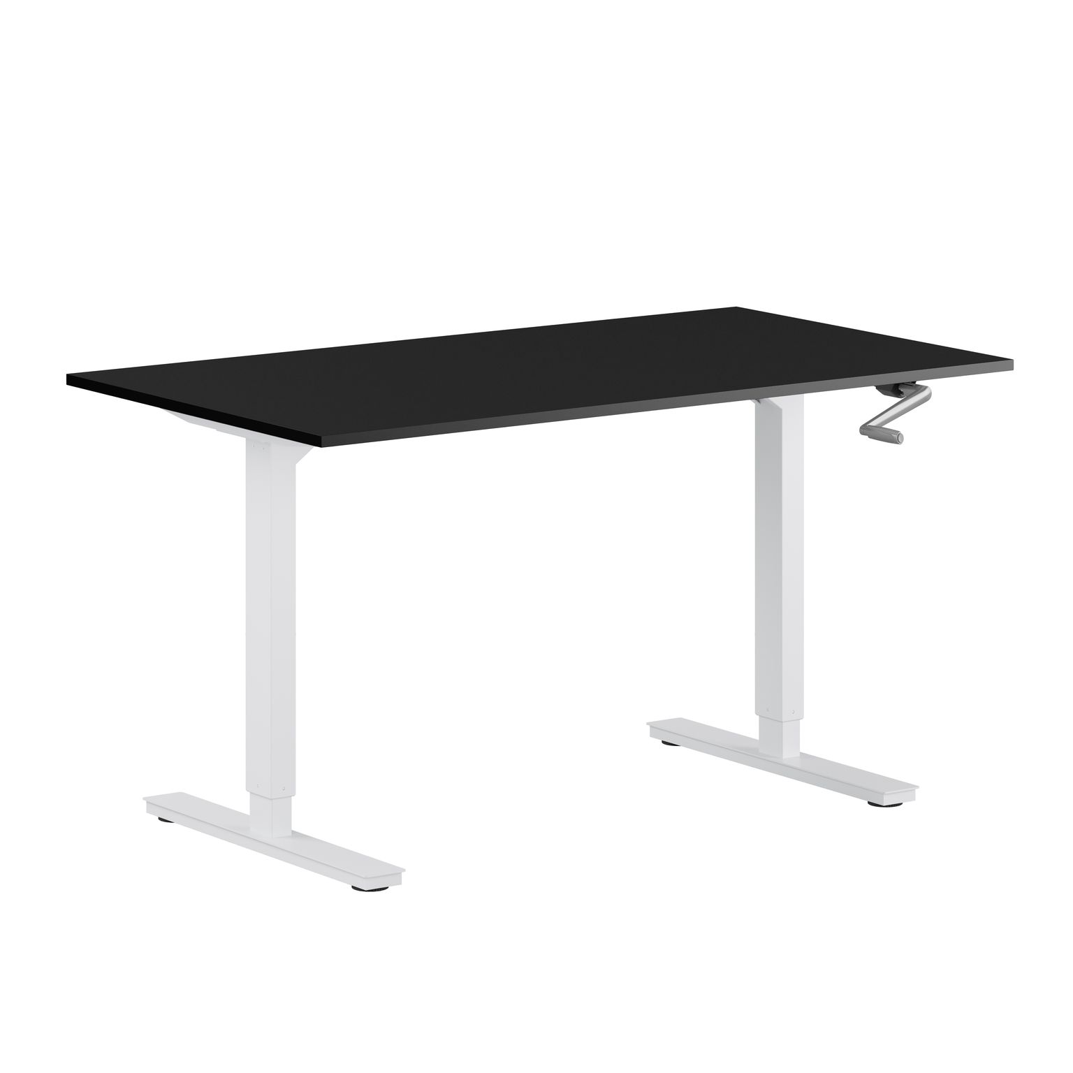 Manuellt höj- och sänkbart skrivbord för kontor StepUp är vår stilsäkra kollektion av manuella höj- och sänkbara skrivbord. Här hittar du ett prisvinnande alternativ till våra höj- och sänkbara skrivbord på el. Bordets höjd manövreras manuellt med vev och går från 690 till 1150 mm högt. Skrivbordet finns i flertalet olika modeller och storlekar, här presenteras 140cm skiva med vitt stativ. StepUp passar utmärkt till såväl hemmakontoret som till den större arbetsplatsen. Skrivbordets stativ är tillverkat med omtanke och kvalité för kontorsplatser som skall hålla länge. Med sina raka former, och pulverlackerade ytskikt matchas denna klassiker enkelt in med resten av inredningen. Detta höj- och sänkbara skrivbord för hemmakontor och kontor, har en lyftkapacitet på 80 kg vilket gör att det klarar av kontorsvardagens alla hjälpmedel. - Höj- och sänkbart skrivbord med vev - 140x70cm - Vitt stativ - Välj mellan olika varianter på skiva: vit / svart / grå / ek / björk - God kvalité i tidlös design Psst! Är du på gång att skapa en tillfällig arbetsplats och letar efter en hållbar lösning? Du vet väl om att med vår återanvändningsgaranti kan vi köpa tillbaka skrivbordet av dig när du inte längre behöver det. Fiffigt va?