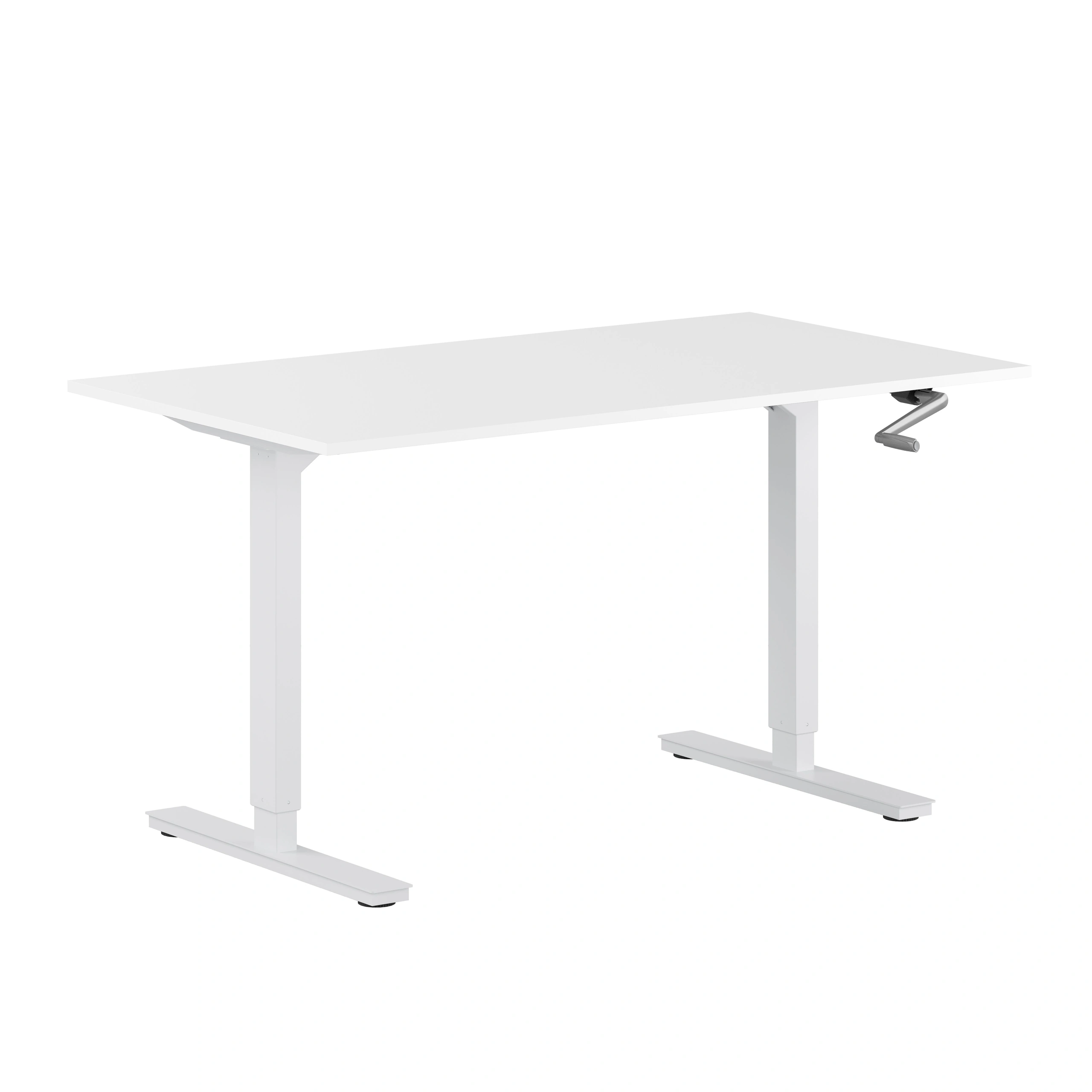 Manuellt höj- och sänkbart skrivbord för kontor StepUp är vår stilsäkra kollektion av manuella höj- och sänkbara skrivbord. Här hittar du ett prisvinnande alternativ till våra höj- och sänkbara skrivbord på el. Bordets höjd manövreras manuellt med vev och går från 690 till 1150 mm högt. Skrivbordet finns i flertalet olika modeller och storlekar, här presenteras 140cm skiva med vitt stativ. StepUp passar utmärkt till såväl hemmakontoret som till den större arbetsplatsen. Skrivbordets stativ är tillverkat med omtanke och kvalité för kontorsplatser som skall hålla länge. Med sina raka former, och pulverlackerade ytskikt matchas denna klassiker enkelt in med resten av inredningen. Detta höj- och sänkbara skrivbord för hemmakontor och kontor, har en lyftkapacitet på 80 kg vilket gör att det klarar av kontorsvardagens alla hjälpmedel. - Höj- och sänkbart skrivbord med vev - 140x70cm - Vitt stativ - Välj mellan olika varianter på skiva: vit / svart / grå / ek / björk - God kvalité i tidlös design Psst! Är du på gång att skapa en tillfällig arbetsplats och letar efter en hållbar lösning? Du vet väl om att med vår återanvändningsgaranti kan vi köpa tillbaka skrivbordet av dig när du inte längre behöver det. Fiffigt va?